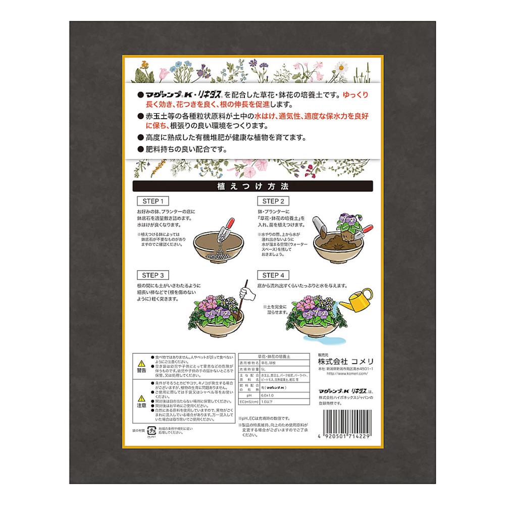●通気性・排水性・保水性・保肥力に優れた草花専用の培養土です。 ●肥料・活力剤入りで花数多く、長期間鮮やかに咲き続けます。