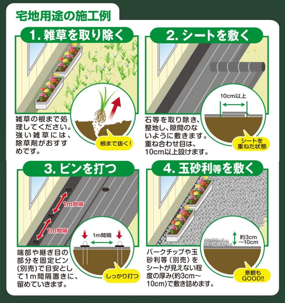 また設置する場所に合わせてシートを敷くことができるので、庭木や作物を避けて日光を遮断でき、除草剤の使用を減らすことができます。