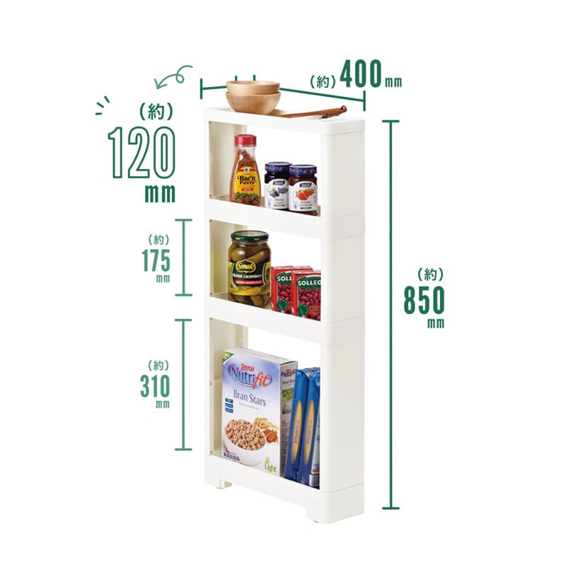 ■幅わずか12センチのスリムラック。ちょっとした隙間を有効活用。