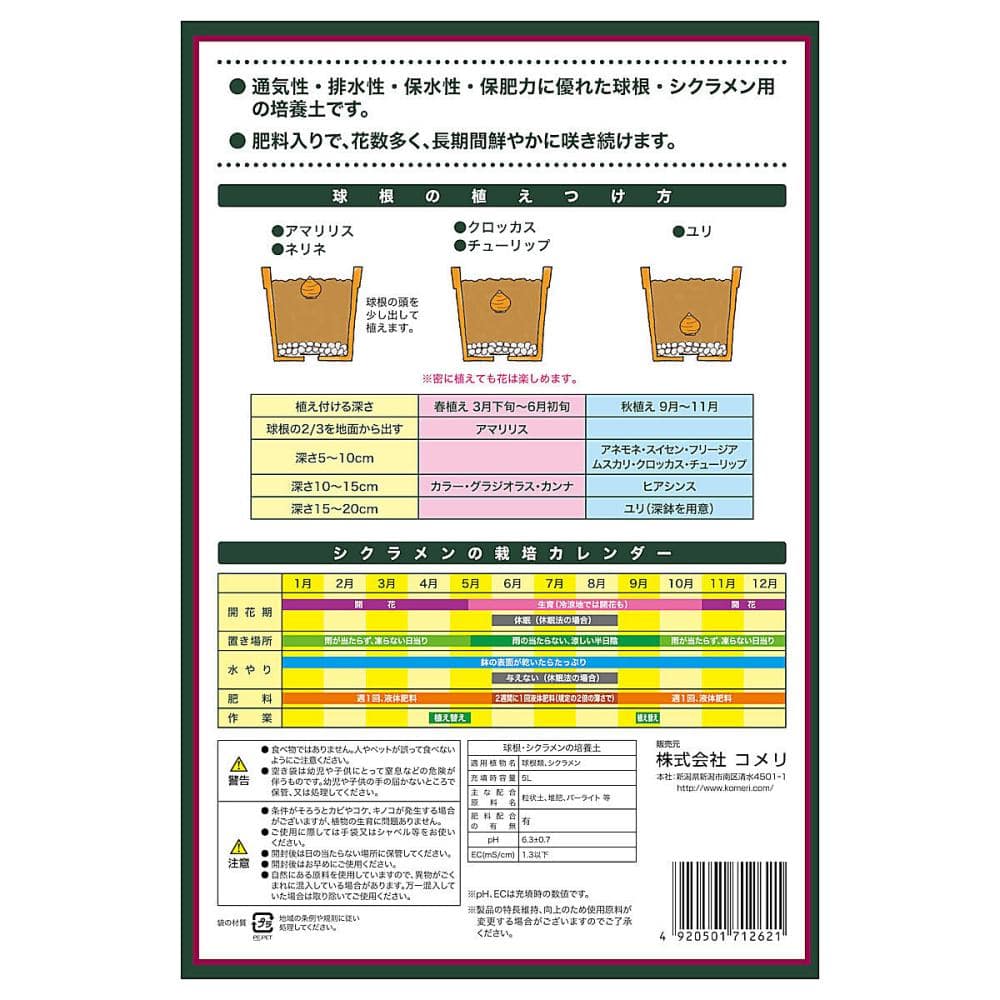 ■通気性・排水性・保水性・保肥力に優れた球根・シクラメン用の培養土です。