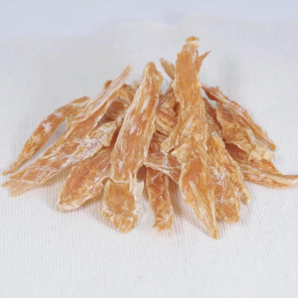 鶏ささみを細く裂いて固く仕上げたスナック。