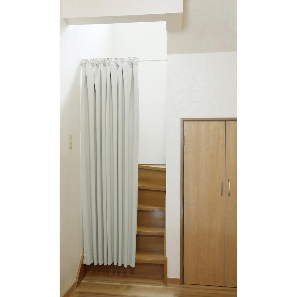 ■突っ張り棒やカーテンレールどちらにも取り付け可能。簡単取り付け。 ■階段、廊下、玄関、洗面所、脱衣所、押し入れ、収納場所などの目隠しや間仕切りに。開け閉めもしやすく便利。 ■階段や光を遮る1級遮光。断熱効果で省エネ効果。 ■安心安全の防炎加工