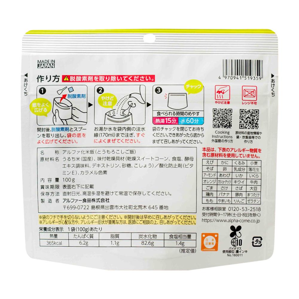 【原材料】うるち米(国産)、味付乾燥具材(乾燥スイートコーン、デキストリン、食塩、酵母エキス、砂糖、こしょう)/酸化防止剤(ビタミンE)