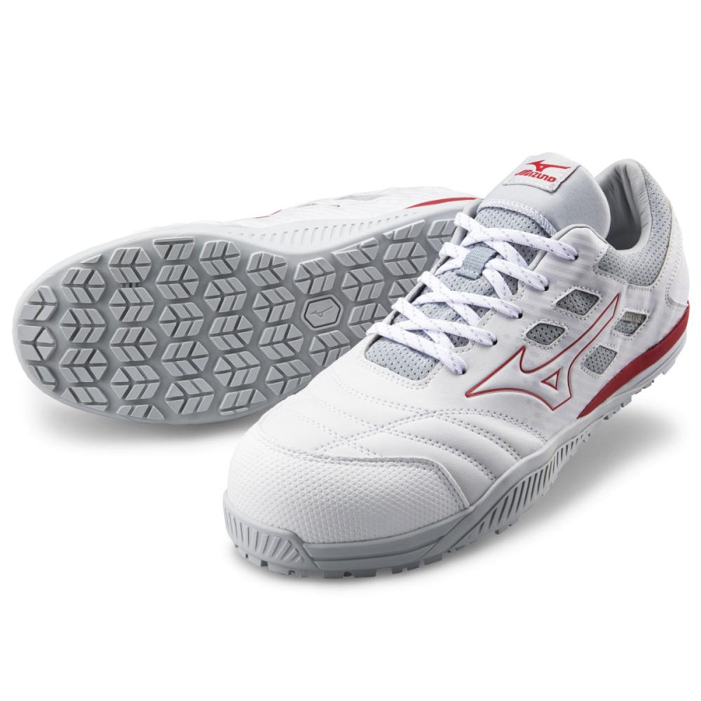素足感覚で、軽やかに弾む。 高反発と柔らかさが特徴のMIZUNO ENERZYを採用。クッション性と素足感覚を両立させた一足。 ステッチにまでこだわったデザインで細く見えるシルエットなのにEEE設計。 素足感覚でも履きこなせる一足です。 ●前足部は素足感覚:前足部のソールを薄くした設計 ●つま先補強:傷みやすいつま先を耐久性のある人工皮革で補強 ●光を反射:夜間作業時に光を反射する再帰反射材を採用 ●先芯:先芯形状をスマートなシルエットで実現 ●ムレにくい:ベロ(甲部分)は通気性のある構造でムレにくい ●丈夫な履き口:擦り減りやすい履き口(内側)に人工皮革を使用。メッシュに比べて丈夫 ●サイドの巻き上げ:横からのあたりに強い ●踵の巻き上げ:ペダリング時に擦り減りやすい踵部分をカバー ●踵部にMIZUNO ENERZY搭載:踵部には柔らかさと反発性に優れたミズノエナジーを搭載 ■踵部:擦り減りにくいラバーを採用※踵部以外で使用しているラバーとの比較 ■耐油性:油による劣化がしにくいラバーソール ■買い替え目安:突起部分がスリップサインと同じ高さまで擦り減ったら買い替えの目安(2ヶ所あり) ■紐の収納:ベロ(上部)に靴紐が収納できほどけにくく、作業中に紐が巻き込まれにくい ■JSAA型式認定合格品(JSAA A種(普通作業用)プロテクティブスニーカー) ■踵部の衝撃エネルギー吸収性、耐滑性