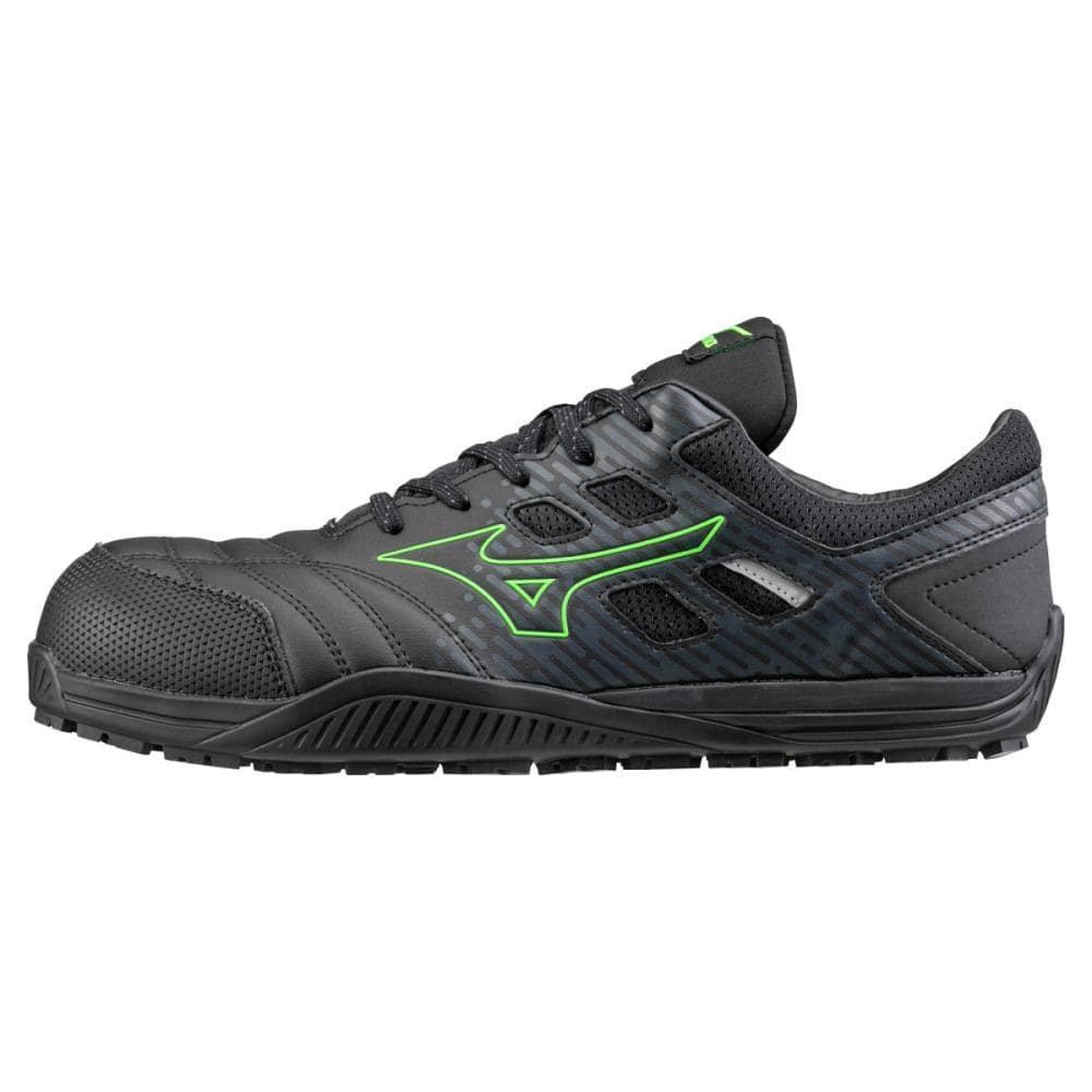 素足感覚で、軽やかに弾む。 高反発と柔らかさが特徴のMIZUNO ENERZYを採用。クッション性と素足感覚を両立させた一足。 ステッチにまでこだわったデザインで細く見えるシルエットなのにEEE設計。 素足感覚でも履きこなせる一足です。 ●前足部は素足感覚:前足部のソールを薄くした設計 ●つま先補強:傷みやすいつま先を耐久性のある人工皮革で補強 ●光を反射:夜間作業時に光を反射する再帰反射材を採用 ●先芯:先芯形状をスマートなシルエットで実現 ●ムレにくい:ベロ(甲部分)は通気性のある構造でムレにくい ●丈夫な履き口:擦り減りやすい履き口(内側)に人工皮革を使用。メッシュに比べて丈夫 ●サイドの巻き上げ:横からのあたりに強い ●踵の巻き上げ:ペダリング時に擦り減りやすい踵部分をカバー ●踵部にMIZUNO ENERZY搭載:踵部には柔らかさと反発性に優れたミズノエナジーを搭載 ■踵部:擦り減りにくいラバーを採用※踵部以外で使用しているラバーとの比較 ■耐油性:油による劣化がしにくいラバーソール ■買い替え目安:突起部分がスリップサインと同じ高さまで擦り減ったら買い替えの目安(2ヶ所あり) ■紐の収納:ベロ(上部)に靴紐が収納できほどけにくく、作業中に紐が巻き込まれにくい ■JSAA型式認定合格品(JSAA A種(普通作業用)プロテクティブスニーカー) ■踵部の衝撃エネルギー吸収性、耐滑性