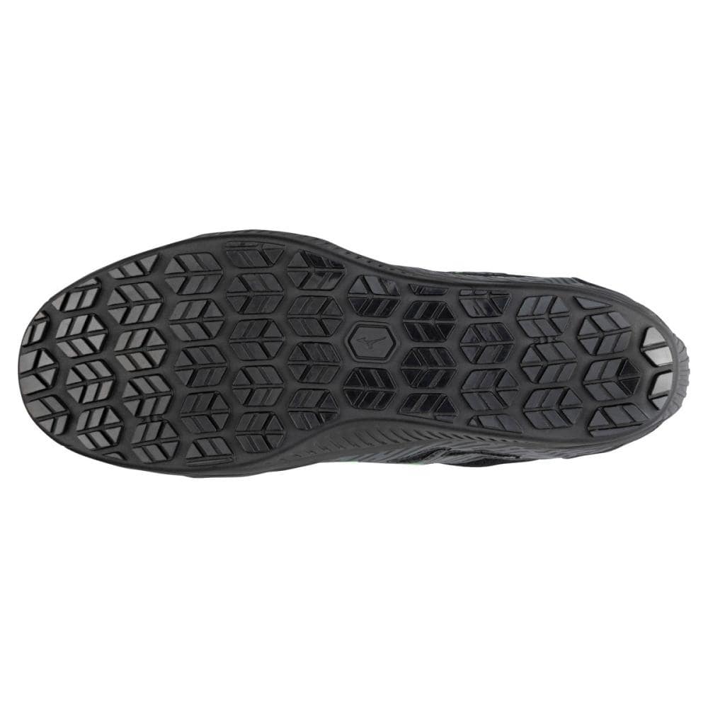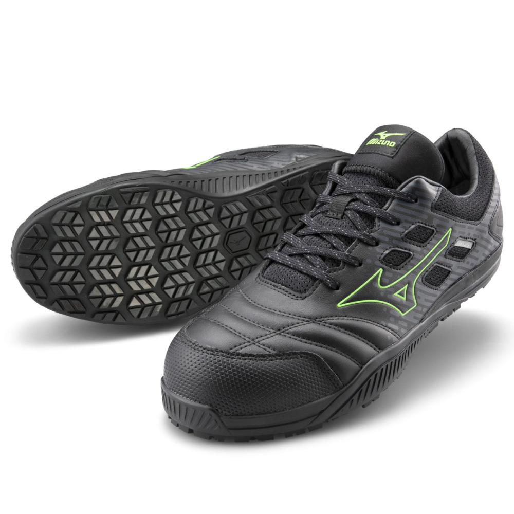 素足感覚で、軽やかに弾む。 高反発と柔らかさが特徴のMIZUNO ENERZYを採用。クッション性と素足感覚を両立させた一足。 ステッチにまでこだわったデザインで細く見えるシルエットなのにEEE設計。 素足感覚でも履きこなせる一足です。 ●前足部は素足感覚:前足部のソールを薄くした設計 ●つま先補強:傷みやすいつま先を耐久性のある人工皮革で補強 ●光を反射:夜間作業時に光を反射する再帰反射材を採用 ●先芯:先芯形状をスマートなシルエットで実現 ●ムレにくい:ベロ(甲部分)は通気性のある構造でムレにくい ●丈夫な履き口:擦り減りやすい履き口(内側)に人工皮革を使用。メッシュに比べて丈夫 ●サイドの巻き上げ:横からのあたりに強い ●踵の巻き上げ:ペダリング時に擦り減りやすい踵部分をカバー ●踵部にMIZUNO ENERZY搭載:踵部には柔らかさと反発性に優れたミズノエナジーを搭載 ■踵部:擦り減りにくいラバーを採用※踵部以外で使用しているラバーとの比較 ■耐油性:油による劣化がしにくいラバーソール ■買い替え目安:突起部分がスリップサインと同じ高さまで擦り減ったら買い替えの目安(2ヶ所あり) ■紐の収納:ベロ(上部)に靴紐が収納できほどけにくく、作業中に紐が巻き込まれにくい ■JSAA型式認定合格品(JSAA A種(普通作業用)プロテクティブスニーカー) ■踵部の衝撃エネルギー吸収性、耐滑性