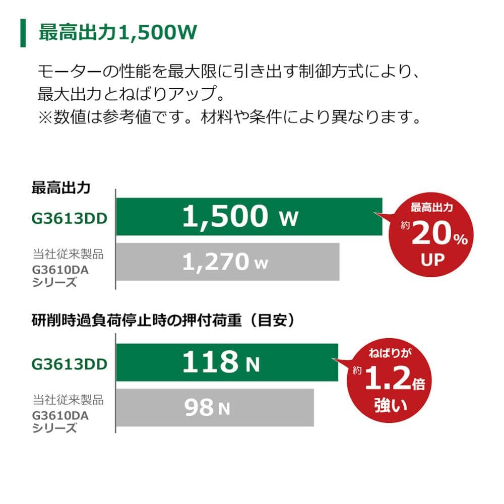 ●防じん・耐水性能のアップ ●モーター部の握り径56mmで握り易く作業しやすい ●パドルスイッチタイプ ●36Vブラシレスモーター搭載 ●トイシ径125mm ●無負荷回転数オートモード時:5,500(回/分)変速モード時:3,200~10,000(回/分) ●本機寸法 (全長(トイシ含まず)×ギヤカバー高さ)363 × 71 mm ●質量 2.7kg トイシ・サイドハンドル含まず ●標準付属品 マルチボルト充電池BSL36A18X×2個、USB端子付き充電器 UC18YDL2、システムケースNo.3、レジノイドフレキシブルトイシ、防振形サイドハンドル、六角棒スパナ