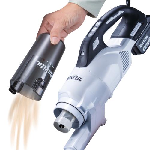 "●ブラシレスモータ搭載 ●吸込仕事率:パワフル100W・強60W・標準35W・エコ15W ●集じん容量250ml ●連続使用時間:パワフル約8分・強約15分・標準約21分・エコ約38分 ●充電時間:実用充電約17分・フル充電約22分 ●標準付属品:本体・バッテリBL1830B×1個・充電器DC18RF・ノズル・ストレートパイプ・サッシノズル"
