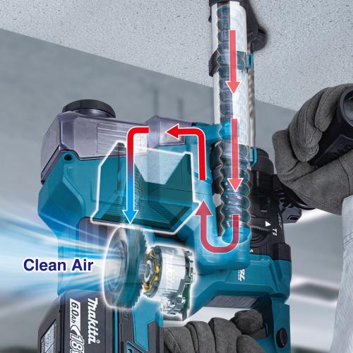 ●集じんシステム搭載モデル ●穴あけ能力:コンクリート18mm・鉄工13mm・木工24mm ●回転数:0~1100回転/分 ●打撃数:0~5000回/分 ●充電時間:実用充電約27分・フル充電約40分 ●標準付属品:本体・バッテリBL1860B×2個・充電器DC18RF・集じんシステム・ストッパポール・サイドグリップ・プラスチックケース