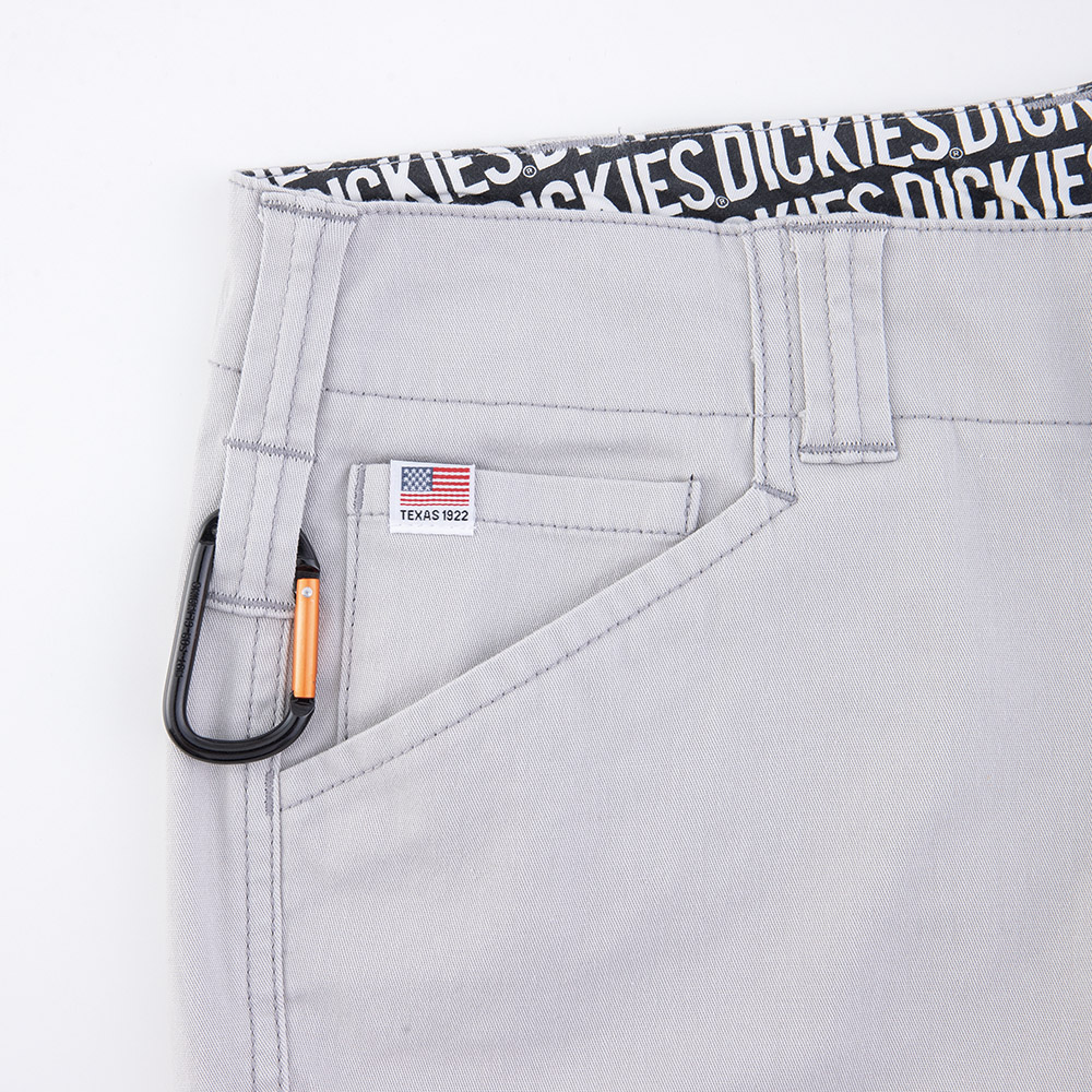 ●ウエストストレッチ(レタード柄) ●動きやすい股下クライミングカット ●両脇カラビナループ付 ●コインポケット付き ●長財布も入るプリントファスナーポケット ●膝ダーツ ●アメリカンネーム付