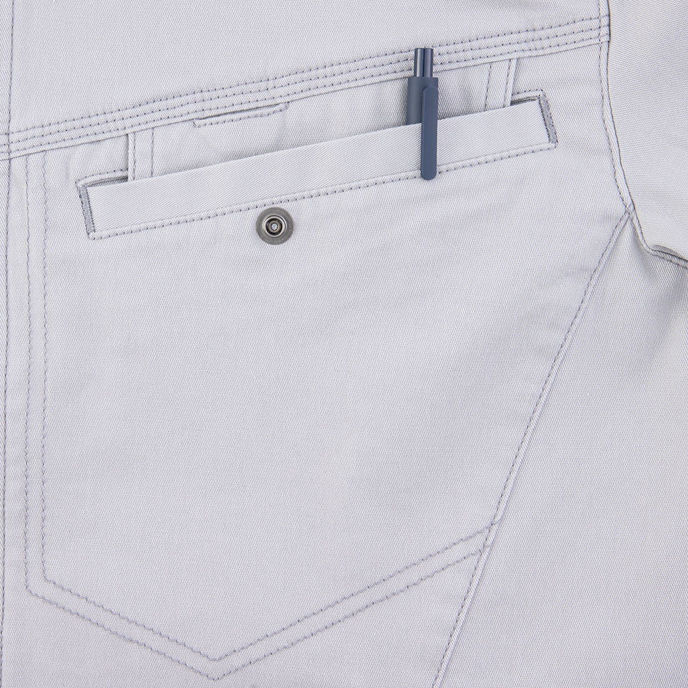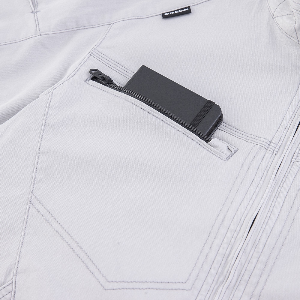 ●背裏レタード柄(ストレッチ素材) ●右胸ファスナーポケット ●左胸フラップインポケット仕様 ●両袖マルチポケット ●帯無しサイドベンツアジャスター ●大容量脇ポケット ●カフスアジャスター ●アメリカンネーム付
