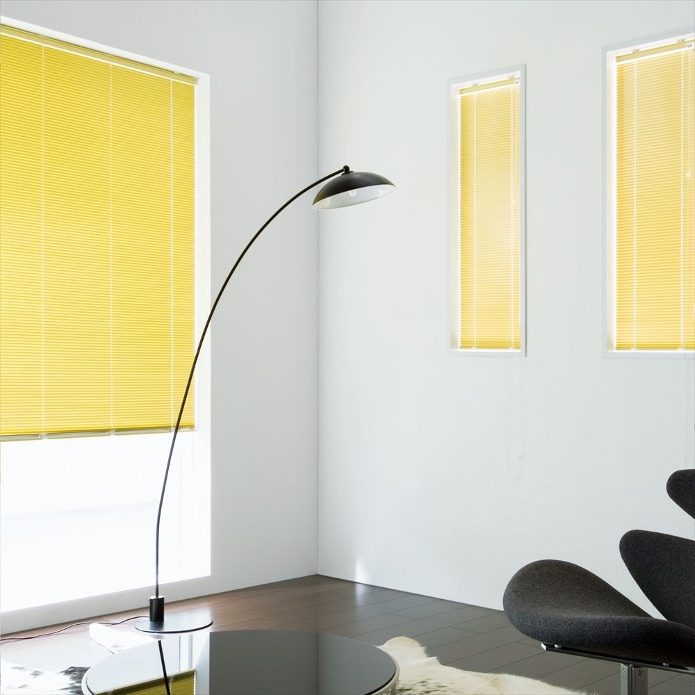 ブラインドの操作棒やコードがシンプルにまとまっているワンポールタイプだから、見た目がスッキリ。はねを回転させるだけで外からの光をお部屋の中に取り入れます。