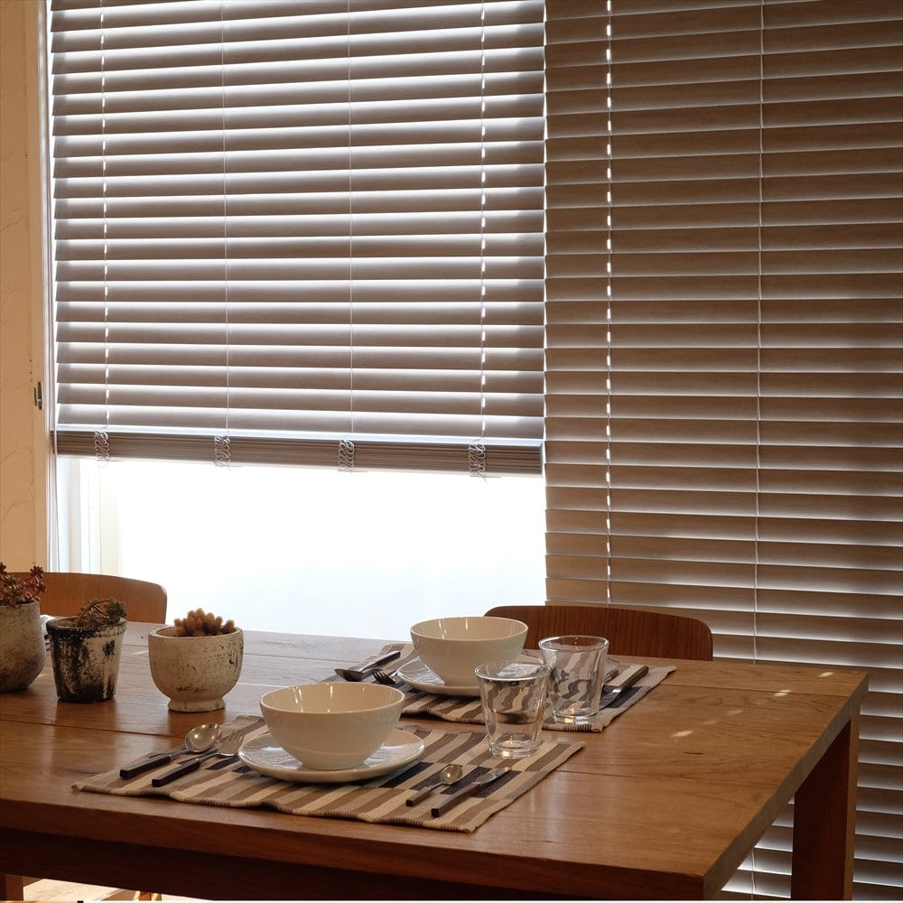 木の質感や温かさを感じられるウッドブラインドは窓辺の家具です。フローリングや木製の家具との相性も抜群です。