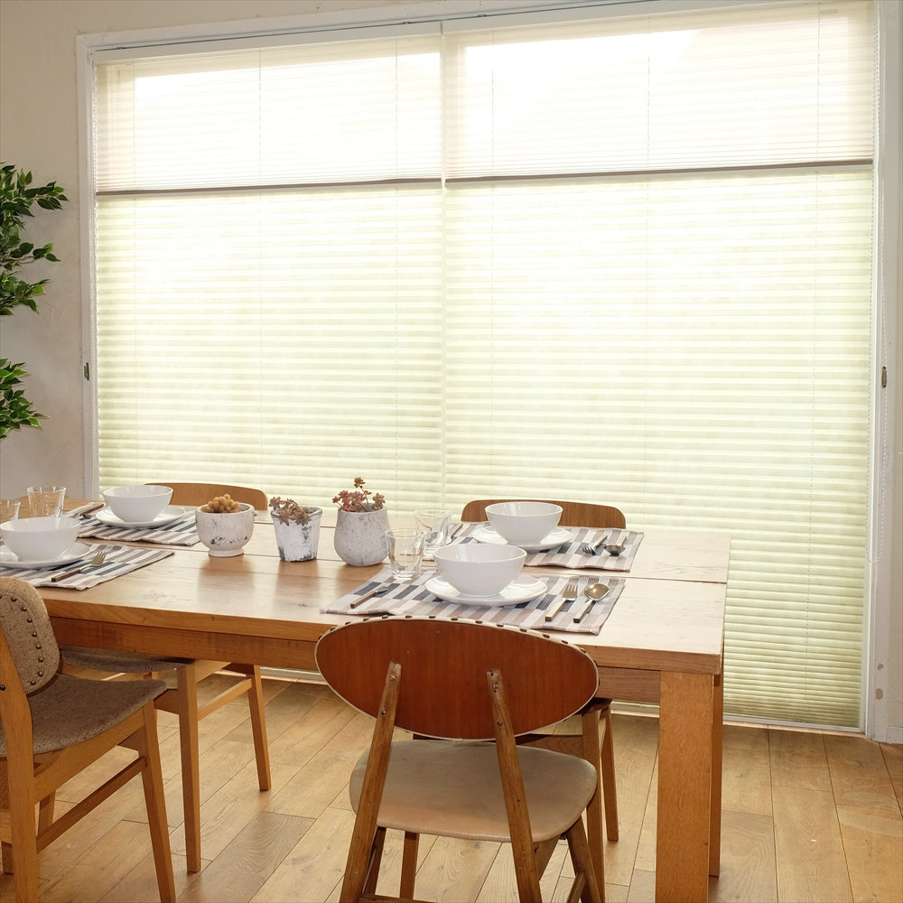 プリーツ状に織り込んだスクリーンを上下に操作します。和室との相性が抜群です。障子の代わりに取付ける方も多いです。