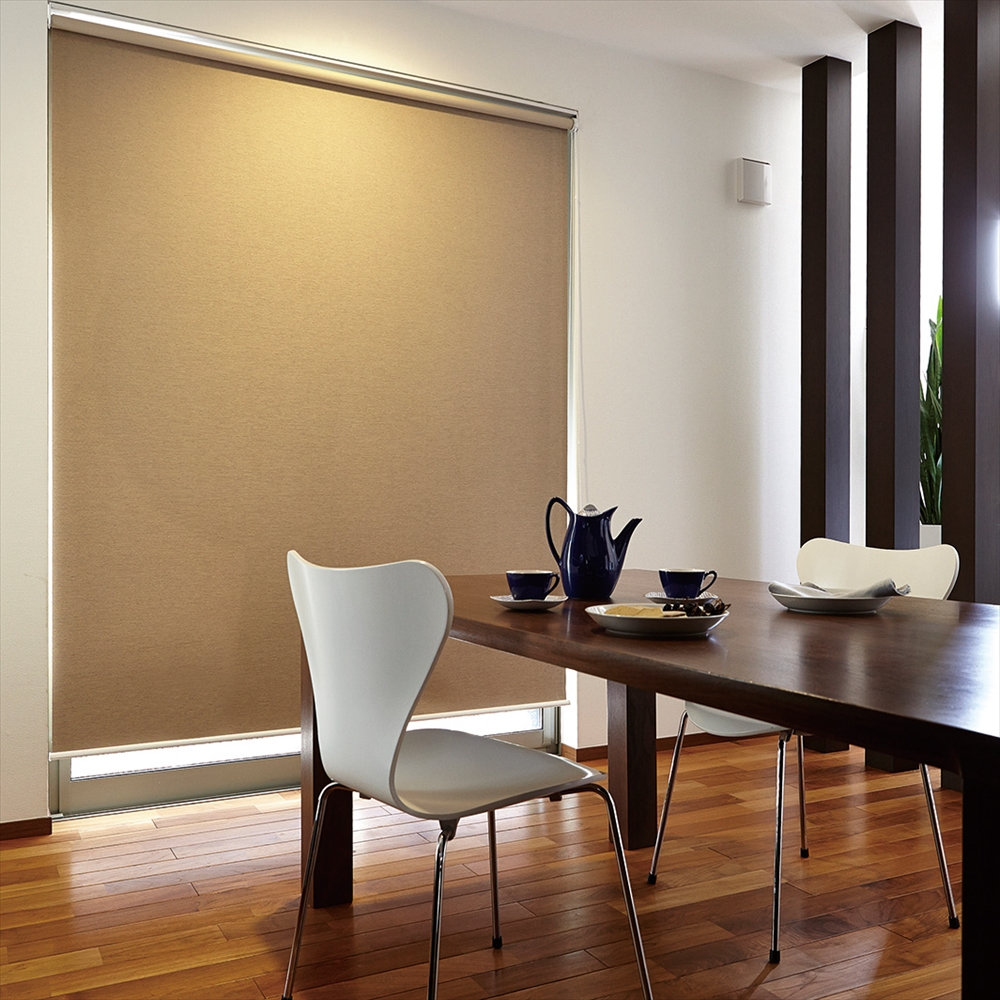 フラットなスクリーンで目隠しができるロールスクリーンは、窓辺をすっきりとした印象にします。カーテンよりもホコリがたまりづらいので、ホコリが気になる方におすすめです。