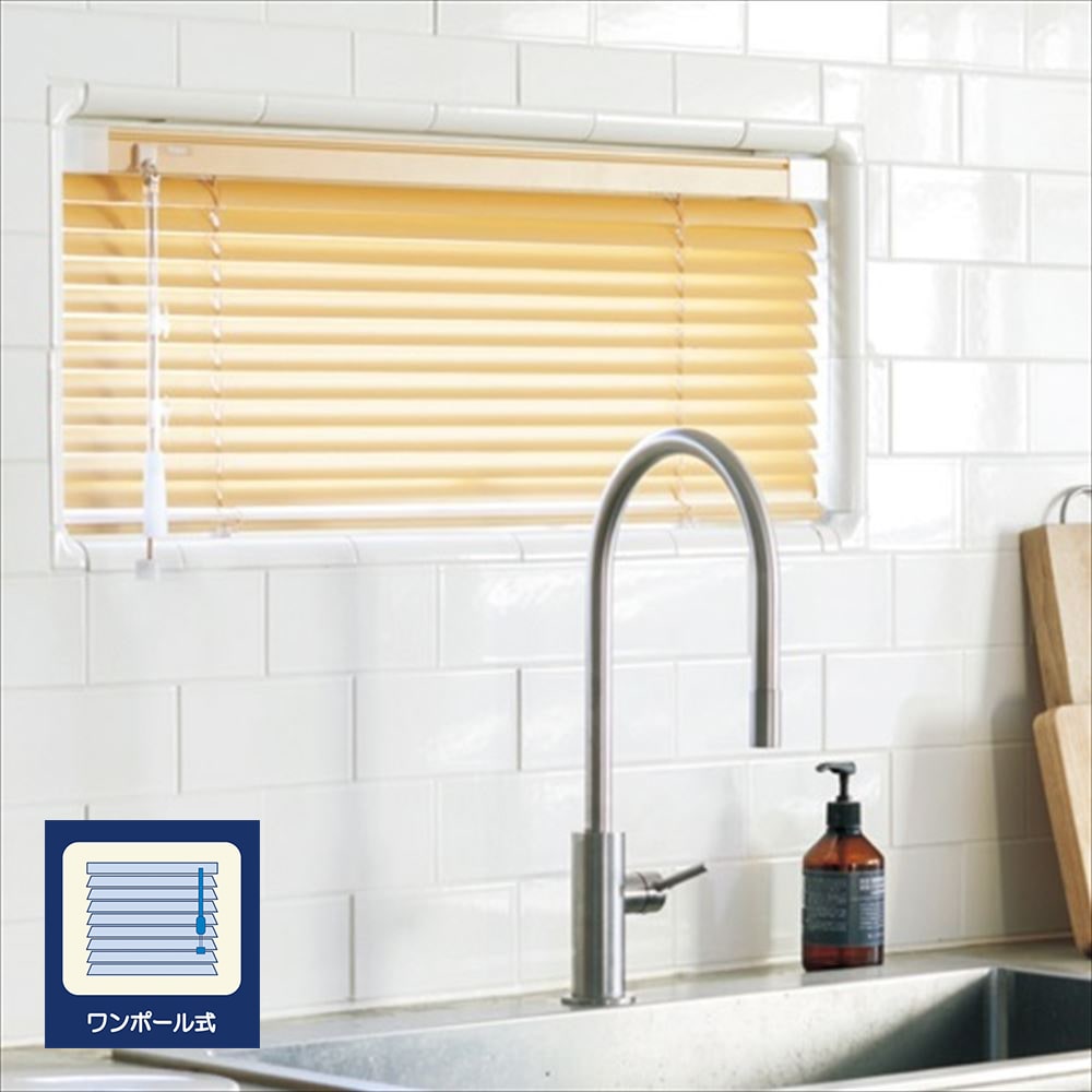 ブラインドの操作棒やコードがシンプルにまとまっているワンポールタイプだから、見た目がスッキリ。はねを回転させるだけで外からの光をお部屋の中に取り入れます。