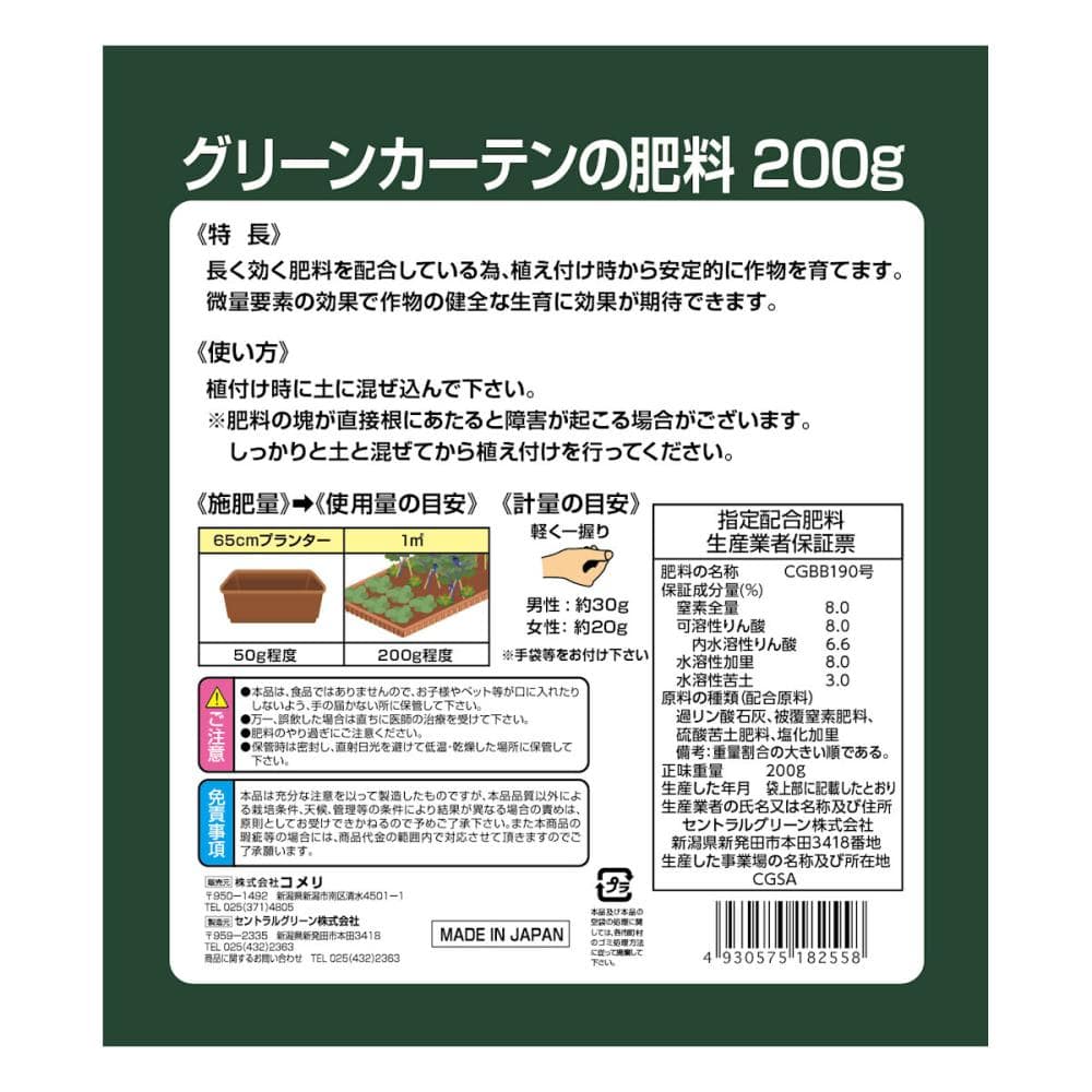 プランターに最適、グリーンカーテン用の肥料です。約120日間、長く効くので、追肥不要です。肥料やけしにくい設計です。