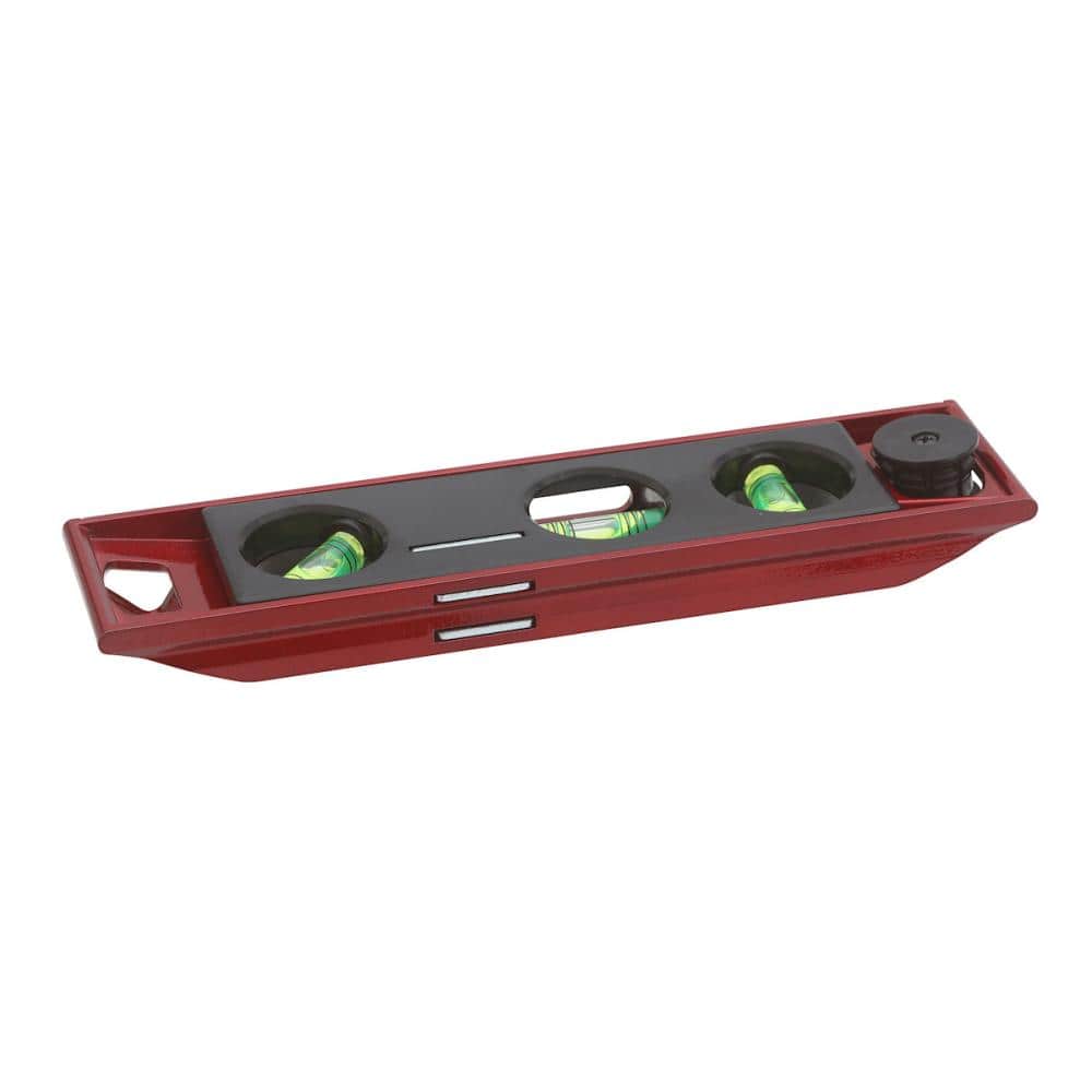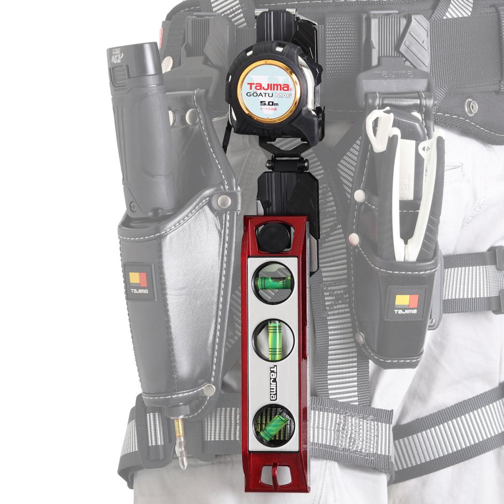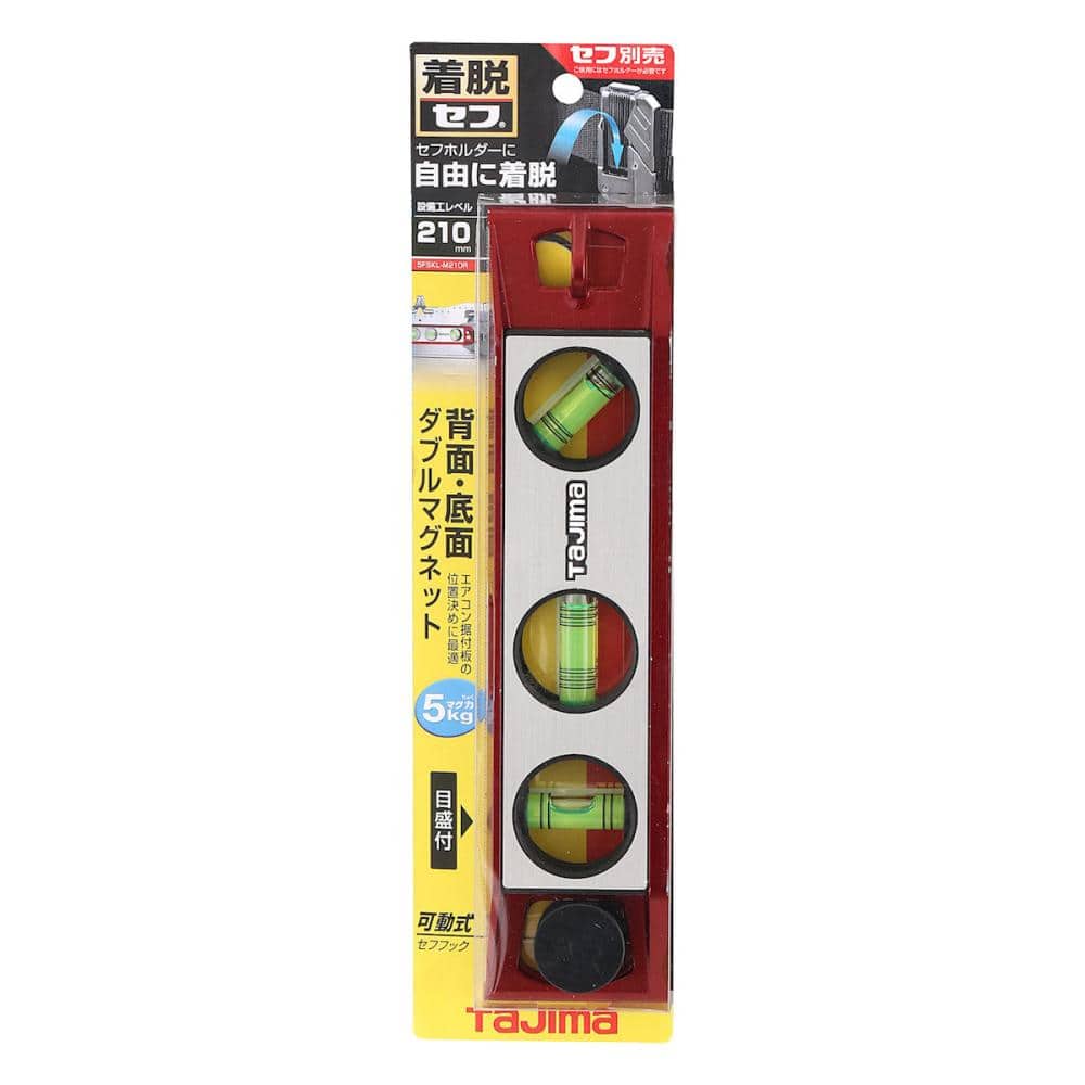 ●※セフホルダーは別売となります。ご利用にはセフホルダーが必要になります ●現場施工に最適な設備工職専水平器 ●セフフック付。腰周りに装着可能(セフホルダーへの取付は2連セフ下位置推奨) ●丈夫なアルミボディ ●上面目盛付。通気孔からエアコン据付け板の距離を測りながらも位置決めできる ●パイプに固定しやすいV溝底面、背面マグネット付 ●安全ロープ取付環付 商品仕様 ●外形サイズ:210mm×50mm ●気泡管:水平・垂直・45° ●測定面 V溝 ●マグネット付(マグ力5kg)