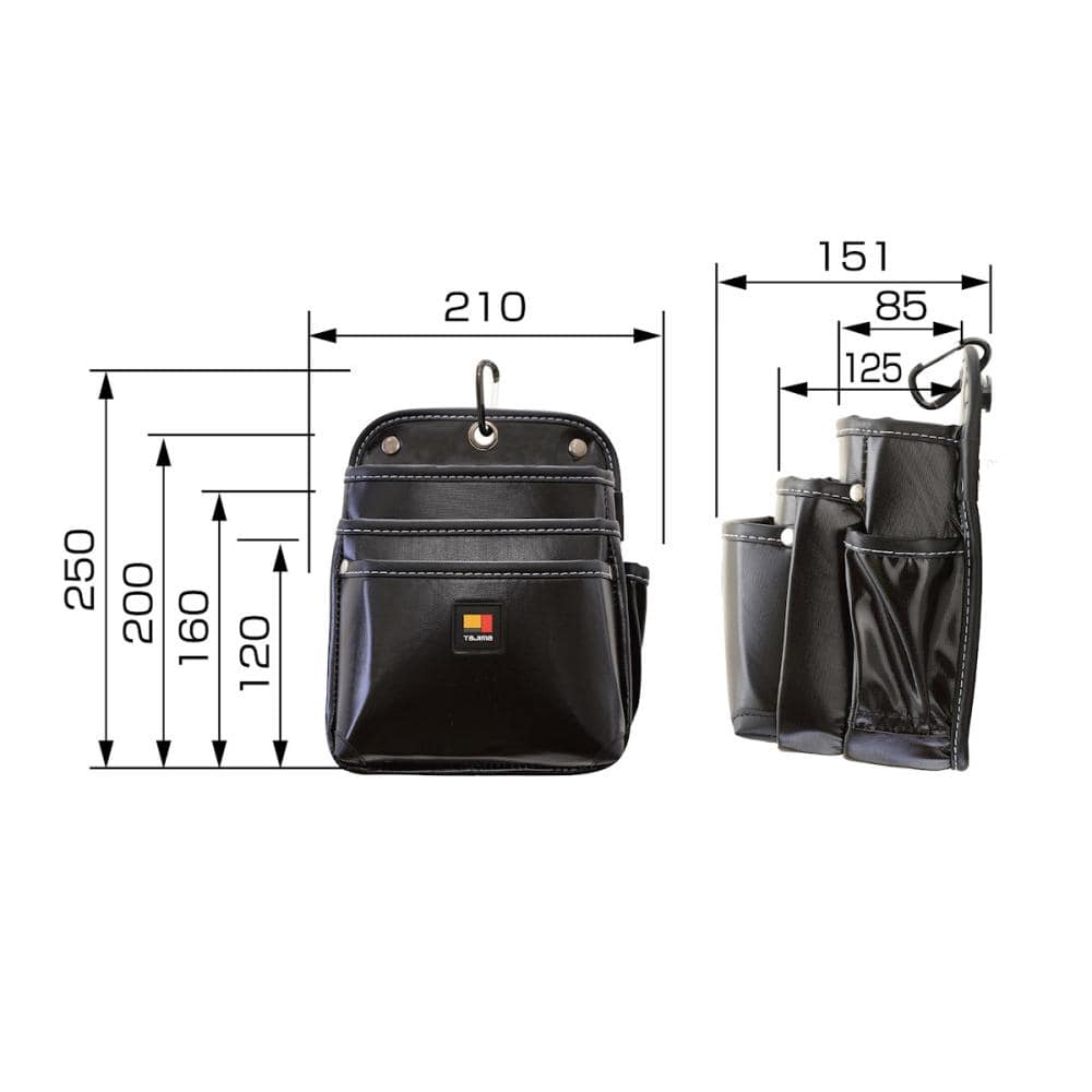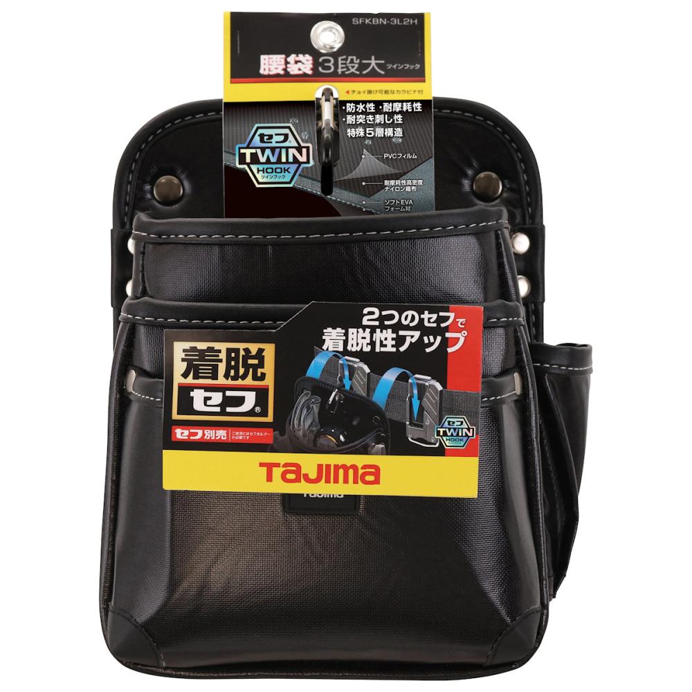●※セフホルダーは別売となります。ご利用にはセフホルダーが必要になります ●2つのセフで着脱性アップ ●水気に強い二重防水構造、耐摩耗性・耐突き刺し性に強い5層構造素材 ●耐摩耗性・耐突き刺し性に強い腰袋生地 ●幅広い職人さんに適したスタンダード形状の腰袋 ●セフ取付収納物総重量:3.0kg以下 ●ちょいがけできるカラビナ付 ●腰周りの組み換えが簡単。ベルトに後から装着可能なセフ着脱式 [仕様] ●セフ取付収納物総重量:3.0kg以下 ●セフ:別売 ●付属物:カラビナ ●防水加工:PVCフィルムでコーティングした高密度ナイロン生地でEVAフォーム材をサンドイッチした5層構造のタジマオリジナル生地採用 [材質] ●生地:ナイロン ●パーツ:ナイロン