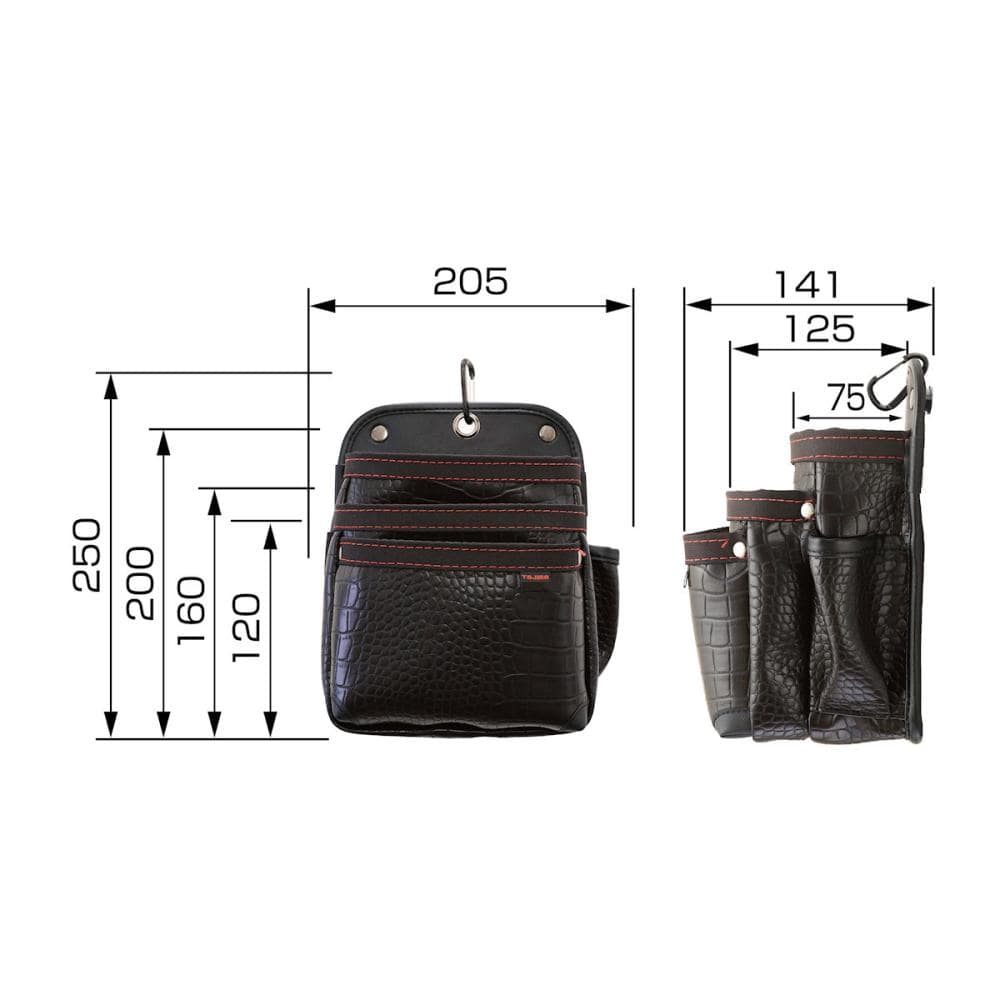 ●※セフホルダーは別売となります。ご利用にはセフホルダーが必要になります ●2つのセフで着脱性アップ ●高強度でしなやかな高耐久合成皮革 ●光沢と凹凸が独特の高級感と存在感を放つクロコ調 ●幅広い職人さんに適したスタンダード形状の腰袋 ●セフ取付収納物総重量:3.0kg以下 ●ちょいがけできるカラビナ付 ●腰周りの組み換えが簡単。ベルトに後から装着可能なセフ着脱式