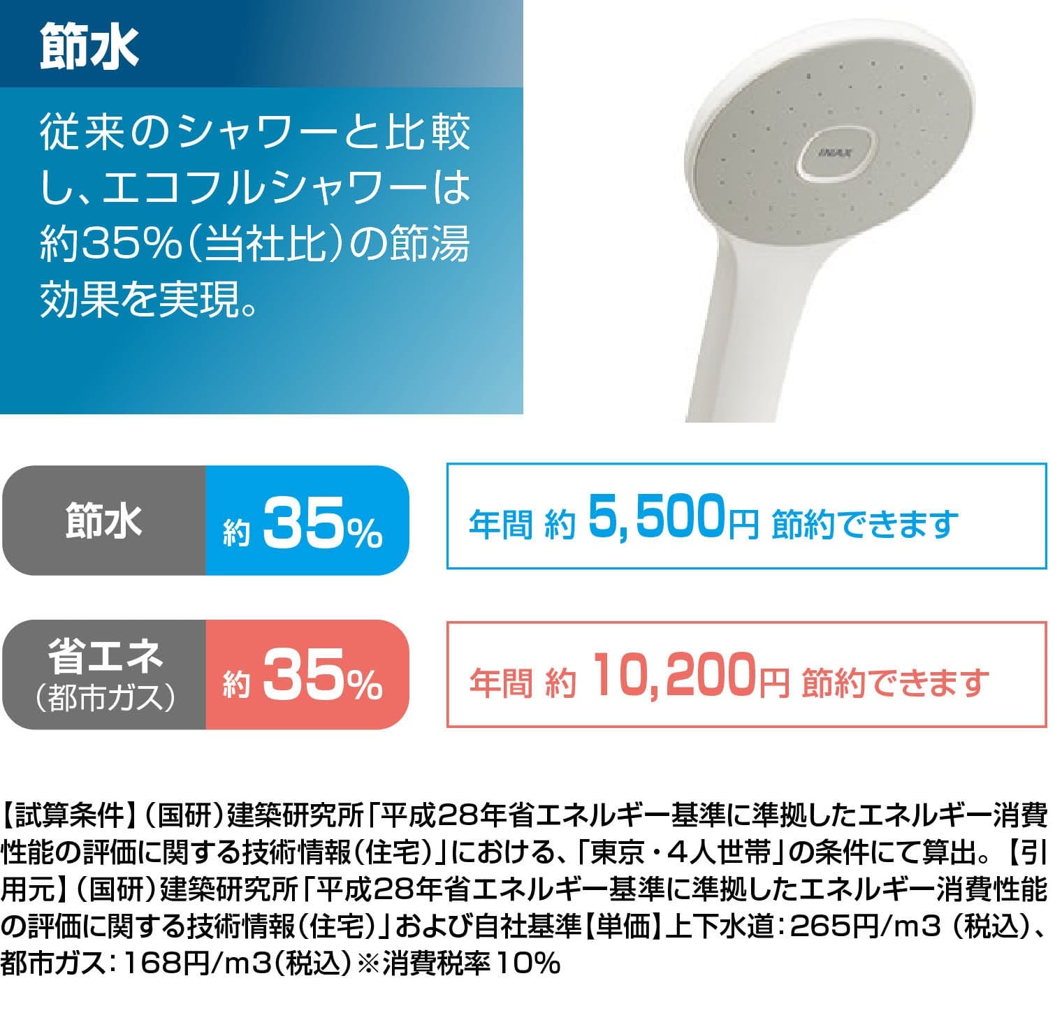 ●エコアクアシャワー:大判のシャワーヘッドと空気を含んだ大粒の水滴で浴び心地のよさを向上、さらに節湯性能も両立させました
