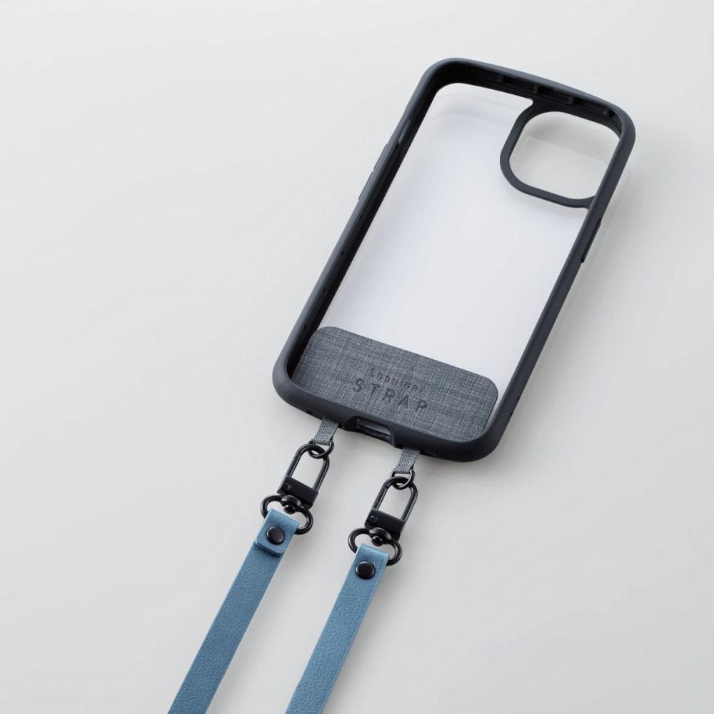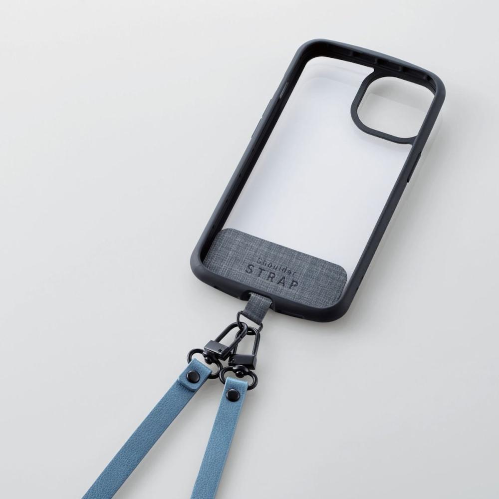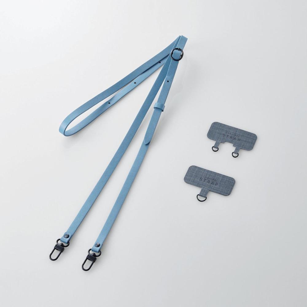 ・ケースにストラップホールがなくても、付属のストラップシートをスマートフォンとケースの間に挟むだけで使用でき、取り外しも簡単です。