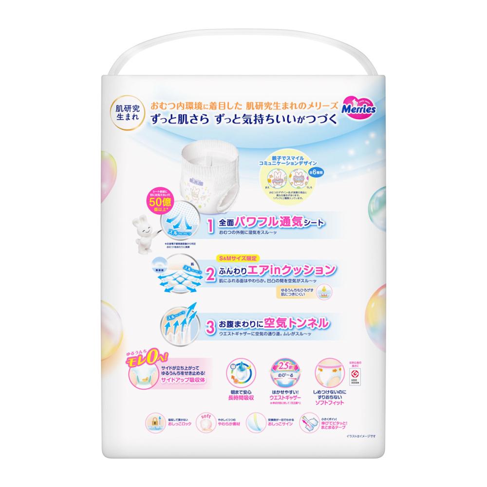 使用上の注意:ご使用前に必ずお読みください ●こまめに交換し、肌に残ったうんちはきれいに拭き取ってください。 ●お肌に異常が出たら使用を中止し、医師にご相談ください。 ●お子様が紙おむつや外袋を口に入れないよう、手の届かない所に保管してください。 ●おしっこお知らせサインは、未使用でも湿度の高い条件で、部分的に色が変わることがありますが、ご使用には問題ありません。また、日光や温度など環境の影響で、吸収後のサインの色が緑がかった青になることもあります。 ●変形・変色のおそれがありますので、暖房器具の近くなど高温になる所に置かないでください。 ●外袋の色が落ちることがありますので、洗剤などが付着しないようご注意ください。 ●メリーズに使用されている高分子吸水材は、水分を吸収するとゼリー状の粒になります。お子様の肌に触れても安全です。 ●誤って洗濯した時は、脱水後、衣類についたパルプやゼリー状の粒をはたき落とし、洗濯機内部に残ったものは取り除いてください。 *汚れた紙おむつは早くとりかえてください。 *テープは直接お肌につけないでください。