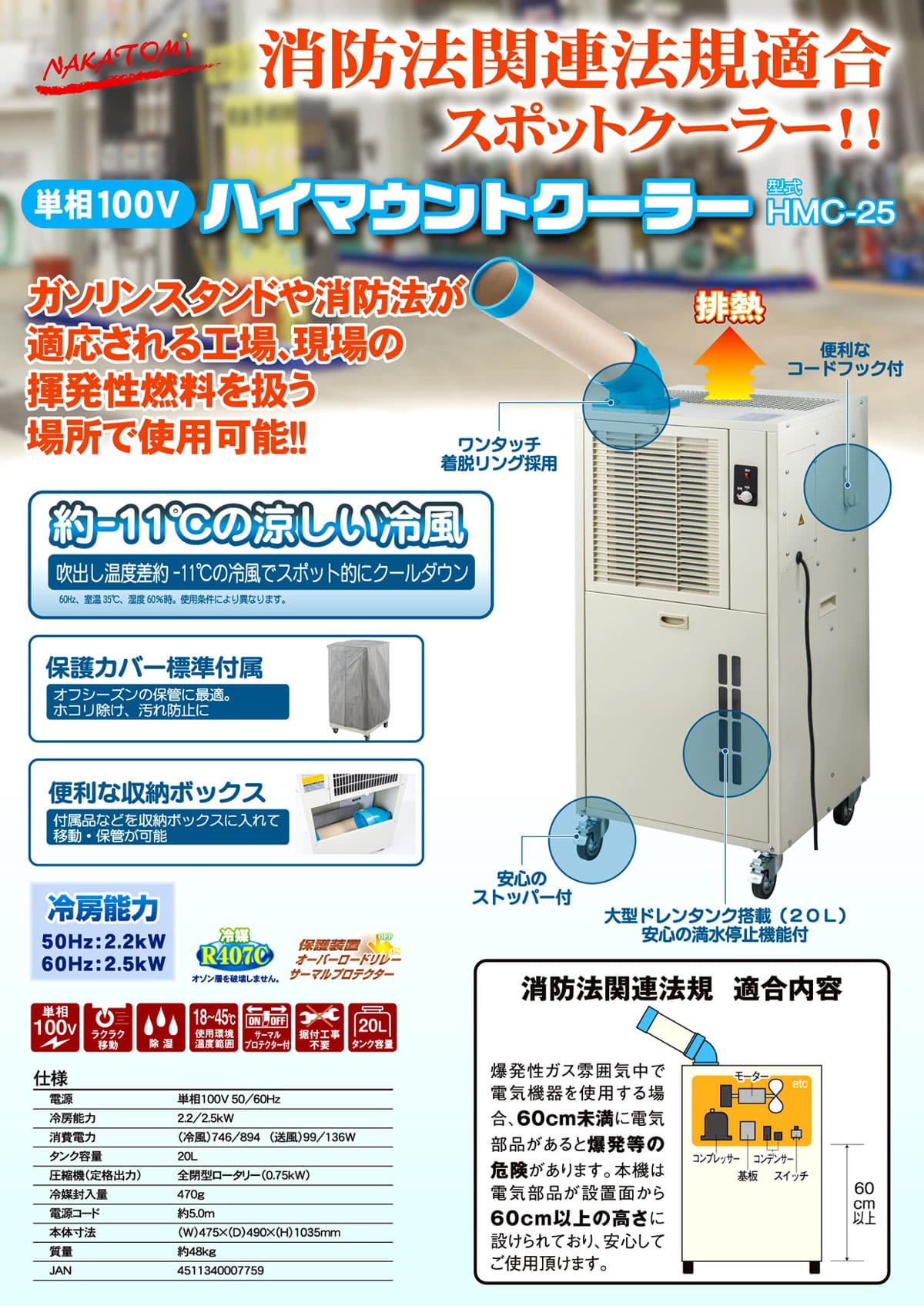 ●電源 単相交流100V 50/60Hz ●電流 冷風 8.59/9.05A 送風 1.04/1.36A ●消費電力 冷風 746W/894W 送風 99/136W ●冷房能力 2.2kW/2.5kW ●冷媒 HFC R407C (封入量470g) ●コンプレッサー 全閉型ロータリー (出力0.75kW) ●タンク容量 20L ●騒音値 62/64dB ●電源コード 約5m