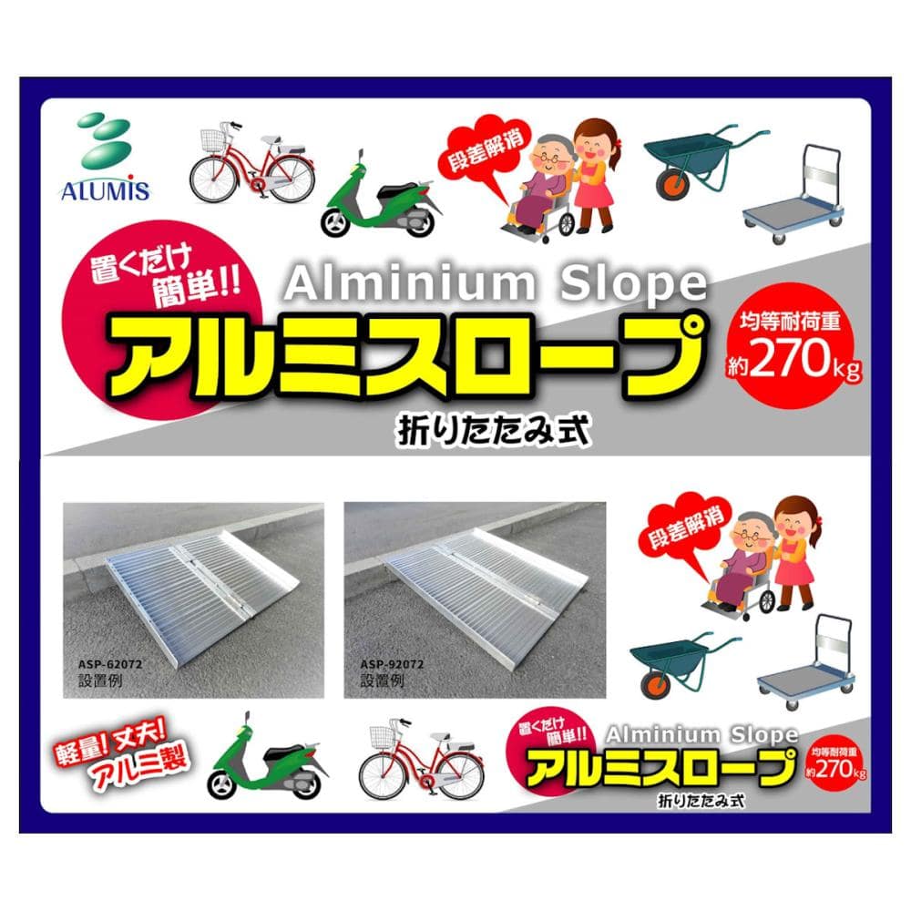 ●折り畳んで収納できるアルミ製の簡易スロープ ●耐荷重:270kg ●設置可能段差 自走:80~160mm 介助:160~220mm