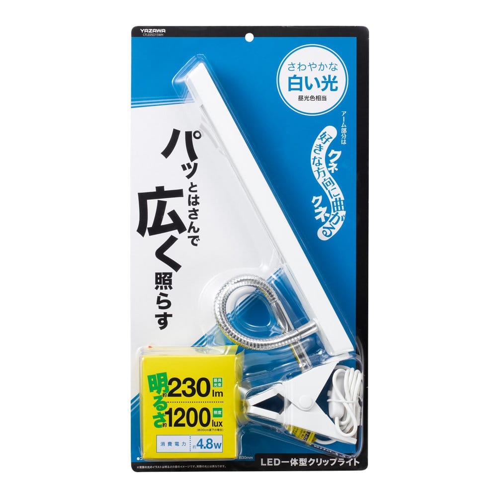 光源 LED 消費電力 4.8W 色温度 6500K 器具光束 約230lm 照度(30cm直下) 約1200lux 設計寿命 約40,000時間 クリップくわえ幅 平行時約30mm コード長 約1.0m 付属品 USBアダプタ (出力DC5V 1.0A) USBアダプタ仕様 定格出力 DC5V 1.0A 定格電圧 AC100-240V 定格周波数 50Hz/60Hz