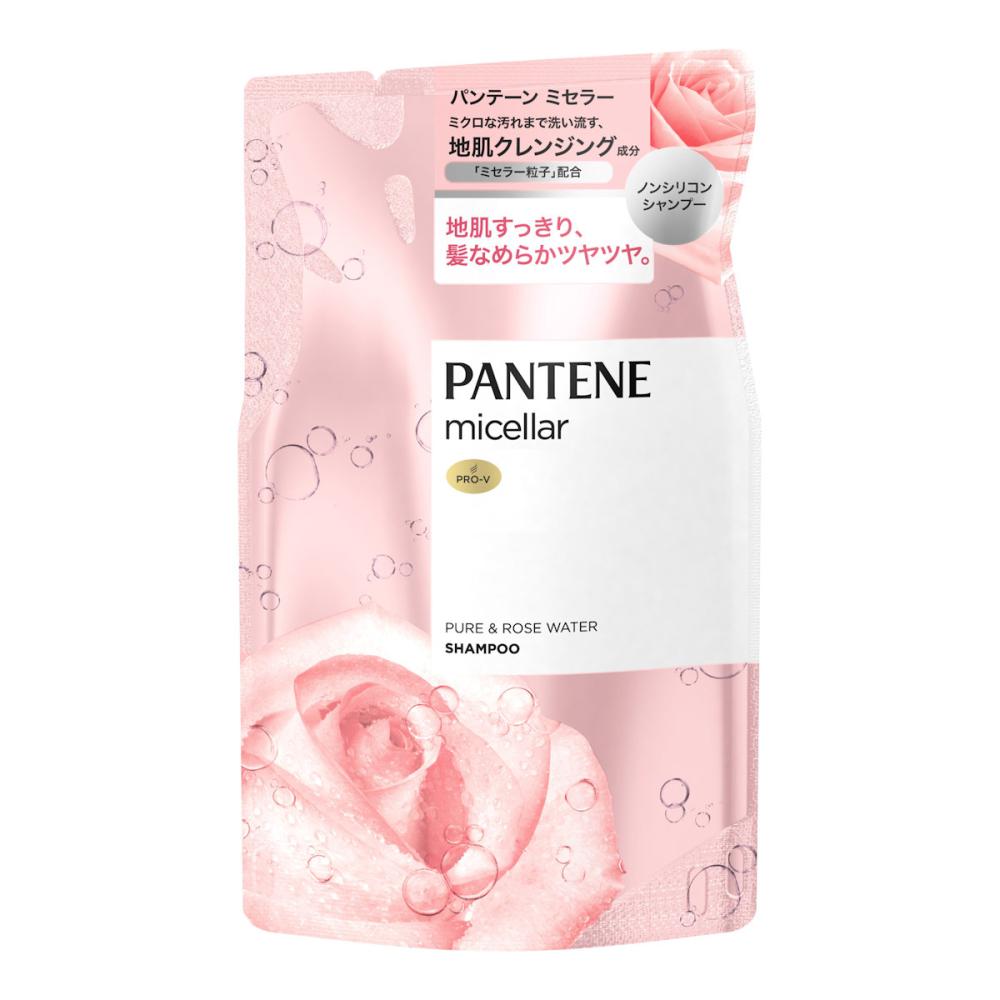ミセラーシリーズ 地肌クレンジング 地肌すっきり、髪なめらかツヤツヤ 。プロビタミンB5 *2 とB3 *3 配合のパンテーンミセラートリートメントが、髪の芯まで浸透。3つの成分無添加 ノンシリコン パラベン無添加 無着色ローズウォーターとスズランのみずみずしいフローラルな香り