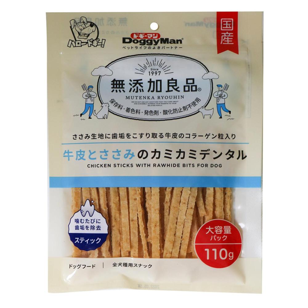 原材料・成分:鶏ササミ、牛皮(コラーゲン含有)、でん粉類、豚コラーゲン、グリセリン、ソルビトール、トレハロース、ミネラル類(ナトリウム)、リン酸塩(Na)