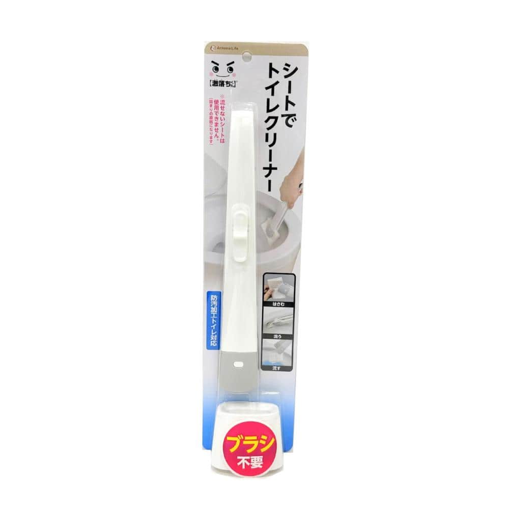 【使用方法】 1本体のロック部を手前にスライドさせ、ロックを外します。 2トイレットペーパーや流せるトイレシートを外れないようにしっかりはさみます。※約3~10mmの厚さになるようにたたんではさんでください。 3本体を閉じたままロック部をスライドさせロックします。 4便器内を掃除します。※先端すべり止めの短い方が清掃面に来るように使用してください。 5本体のロック部を手前にスライドさせてロックを外し、そのまま流します。※必ずトイレットペーパーや流せるシートのみ使用して下さい。 6使用後は軽く水洗いし、必ずロックした状態でケースに立てて保管してください。 ※トイレットペーパー、流せるシート以外は使用できません。