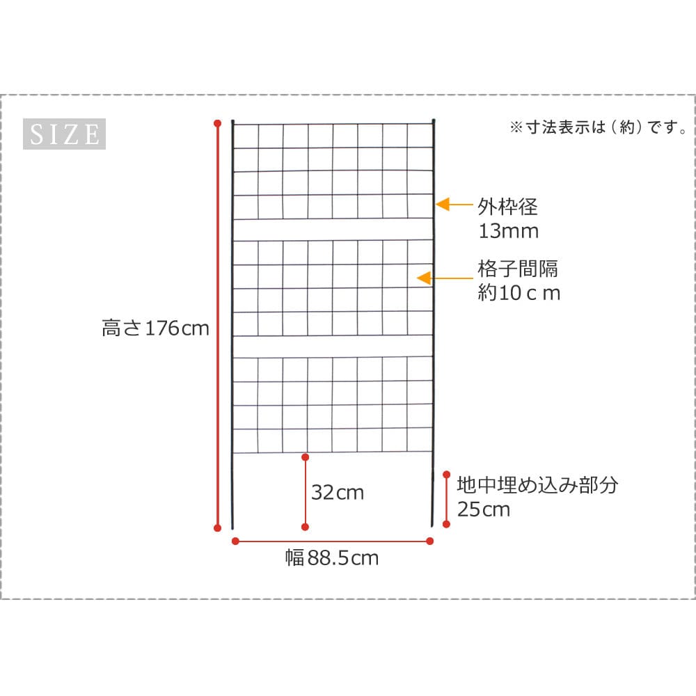 洗練されたスタイリッシュさも、クラシカルで優美な雰囲気も感じられます。シンプルモダン、イングリッシュガーデン、フレンチ、ナチュラルetc...、どんなテイストの空間も引き立てて、場所を問わず活躍します。見通しのいいアイアンフェンスは、お庭の開放感を維持できるうえに、木製のものより経年劣化が少ないのがポイント。ほんの少し見上げる高さのハイタイプ(約176cm)は、圧迫感なく空間を区切るのにぴったり。グリーンフェンスとしてバラやゴーヤなどをからませて、お世話するのにも適したサイズです。