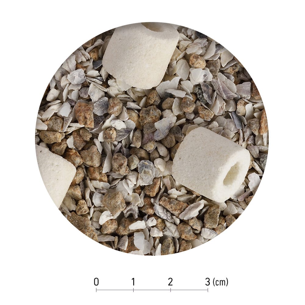 原材料・成分:天然石、天然かきがら、ガラス ネット:ポリエチレン