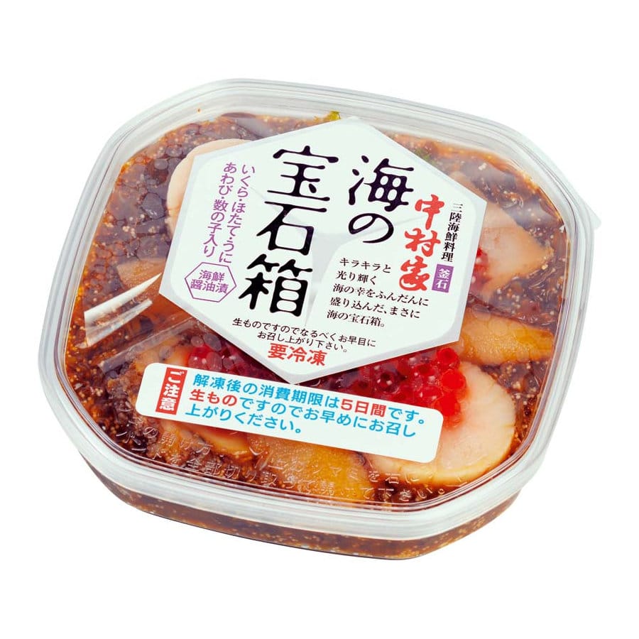 いくら、ほたて、数の子、あわび、うになど、海のお宝が一堂に会した海の宝石箱と言える逸品です。