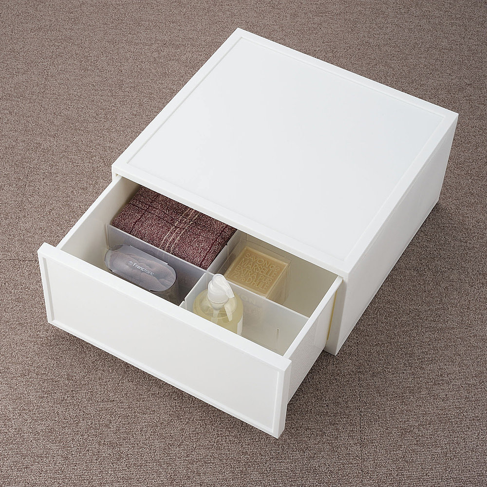 【サイズ】 外寸:約幅36×高さ18.3×奥行36cm 引き出し内寸:約幅30.5×高さ14.6×奥行30.5cm 【収納目安】 CD2列に60枚程度 【付属品】 仕切り板付き 【耐荷重】 8kg 【材質】 本体:ポリプロピレン、ステンレス鋼 すべり止め:エラストマー樹脂 【原産国】 日本