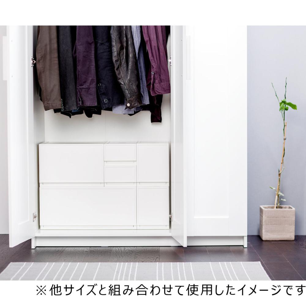 【サイズ】 外寸:約幅54×高さ24.3×奥行36cm 引き出し内寸:約幅48.9×高さ20.6×奥行31.9cm 【収納目安】 ワイシャツなら10枚程度 【付属品】 仕切り板付き 【耐荷重】 5kg 【材質】 本体:ポリプロピレン、ステンレス鋼 すべり止め:エラストマー樹脂 【原産国】 日本