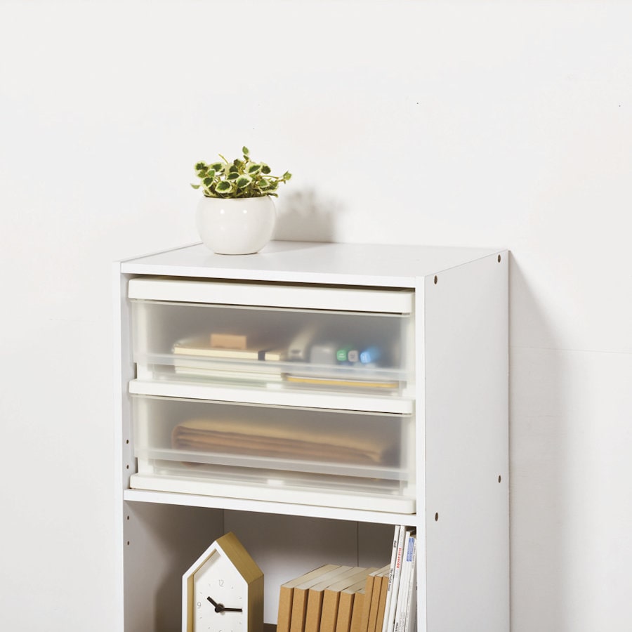 【サイズ】 外寸:約幅39×高さ26.5×奥行26cm 引き出し内寸:約幅33.7×高さ9×奥行22.3cm 【耐荷重】 天板:1kg 引き出し1段あたり:1kg 【材質】 ポリプロピレン ※完成品