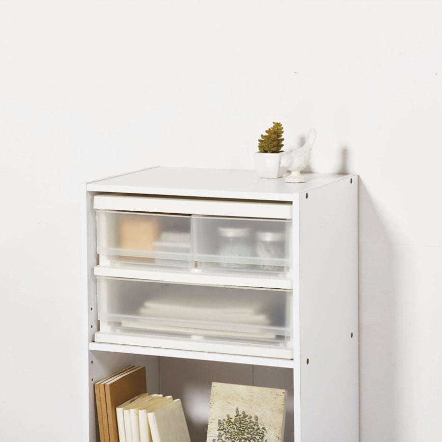 【サイズ】 外寸/約幅39×高さ26.5×奥行26cm 引き出し内寸/フルサイズ:約幅33.7×高さ9×奥行22.3cm ハーフサイズ:約幅15.4×高さ9×奥行22.3cm 【耐荷重】 天板/1kg 引き出し1段あたり/フルサイズ:1kg ハーフサイズ:0.5kg 【材質】 ポリプロピレン ※完成品