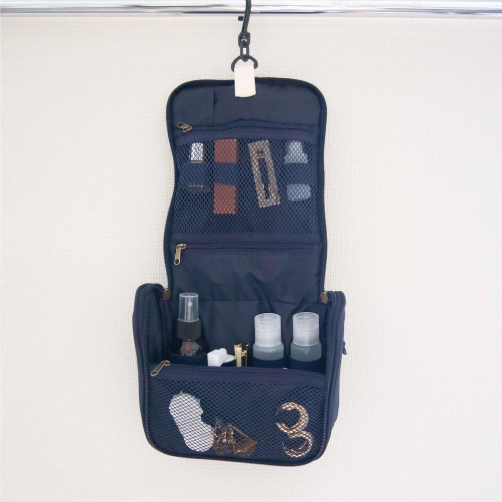 ■フックに吊り下げたまま使用可能 ■収納ポケットが豊富で、化粧品の分類もしやすいトラベルポーチ。 【耐荷重】 約13kg 【材質】 表生地:ナイロン100% 内生地:ポリエステル100% 【原産国】 中国