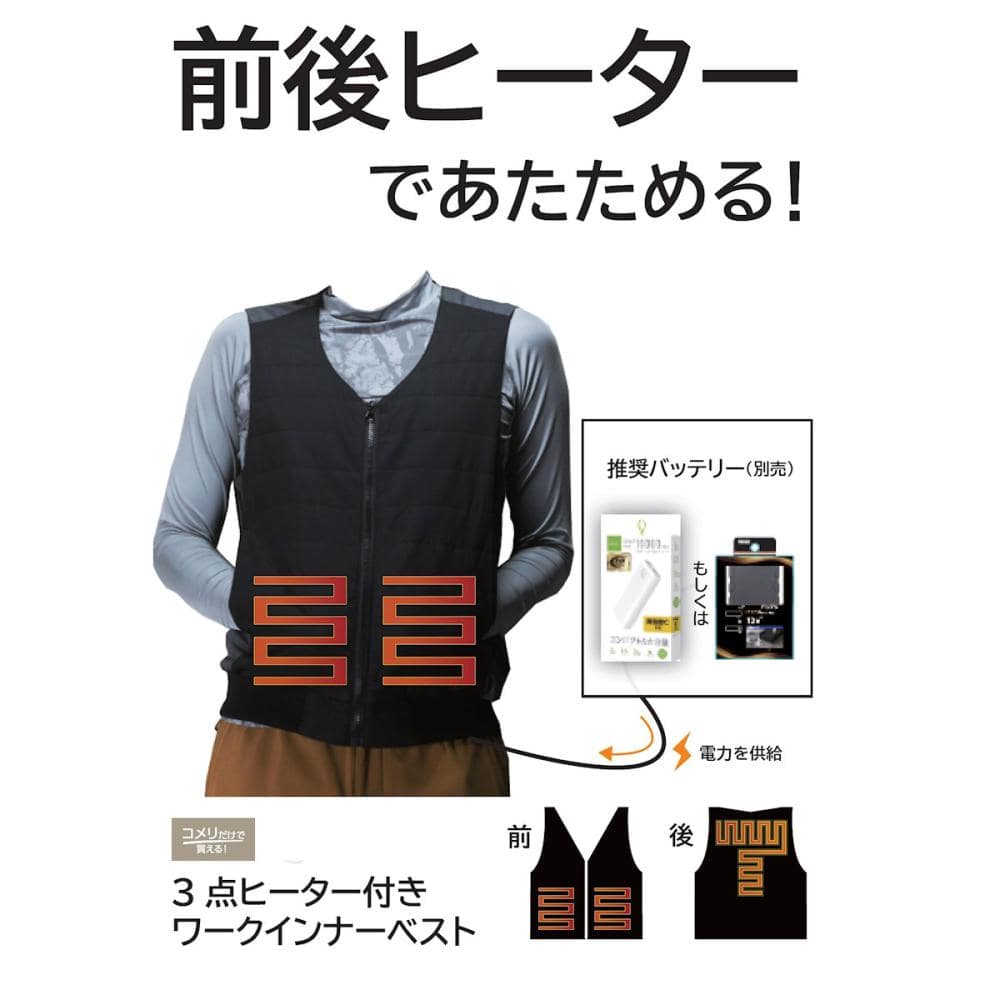 ●背中(T型)と両脇に3点のヒーター付き