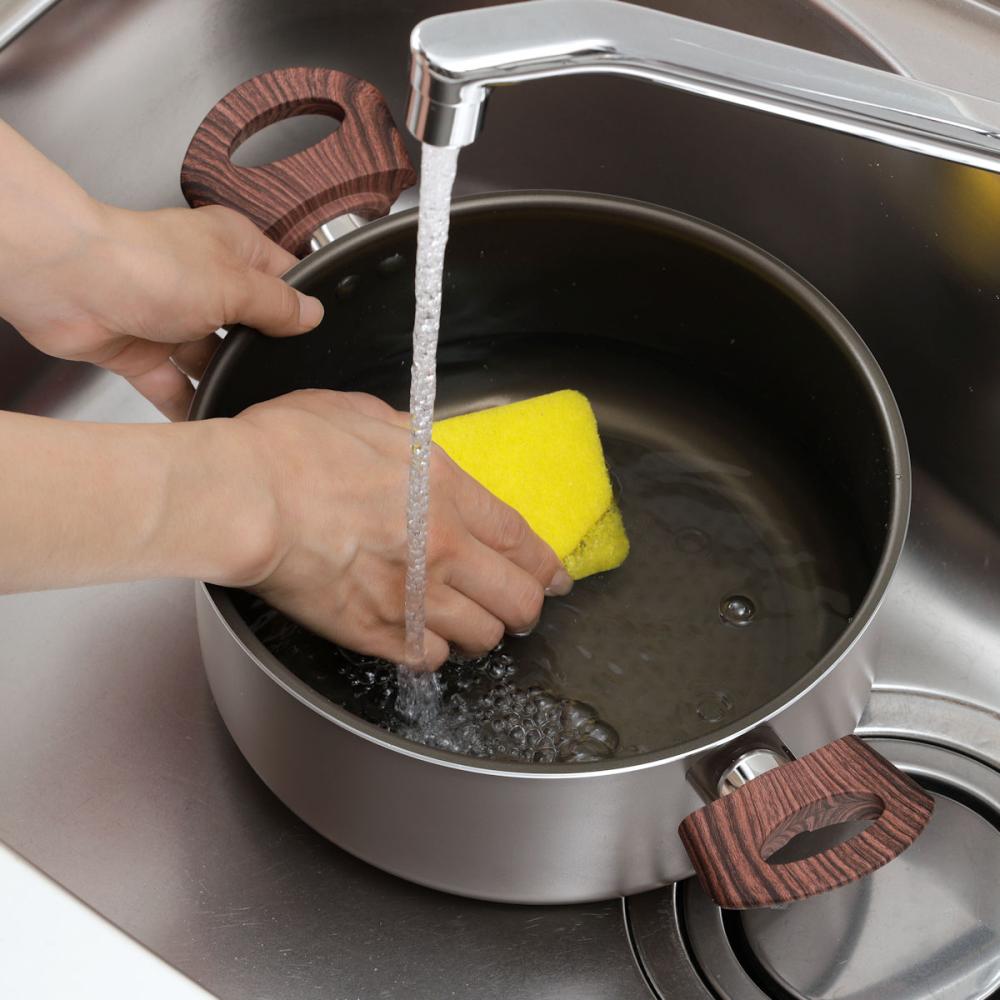 内面は、「金属ヘラ耐摩耗性テス200万回クリア」※のふっ素樹脂加工を施しています。※JIS S2010内面塗膜耐摩耗性試験に準じた試験方法にて実施。
