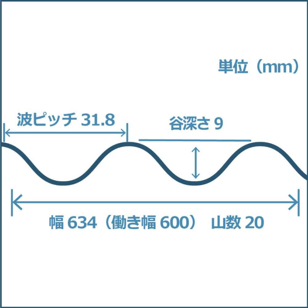 働き幅600mm、厚さ0.19mm、波ピッチ31.10mm