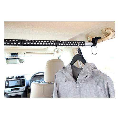 上着をハンガーのまま掛けたり、前後に2本使えば車内積みに便利です。