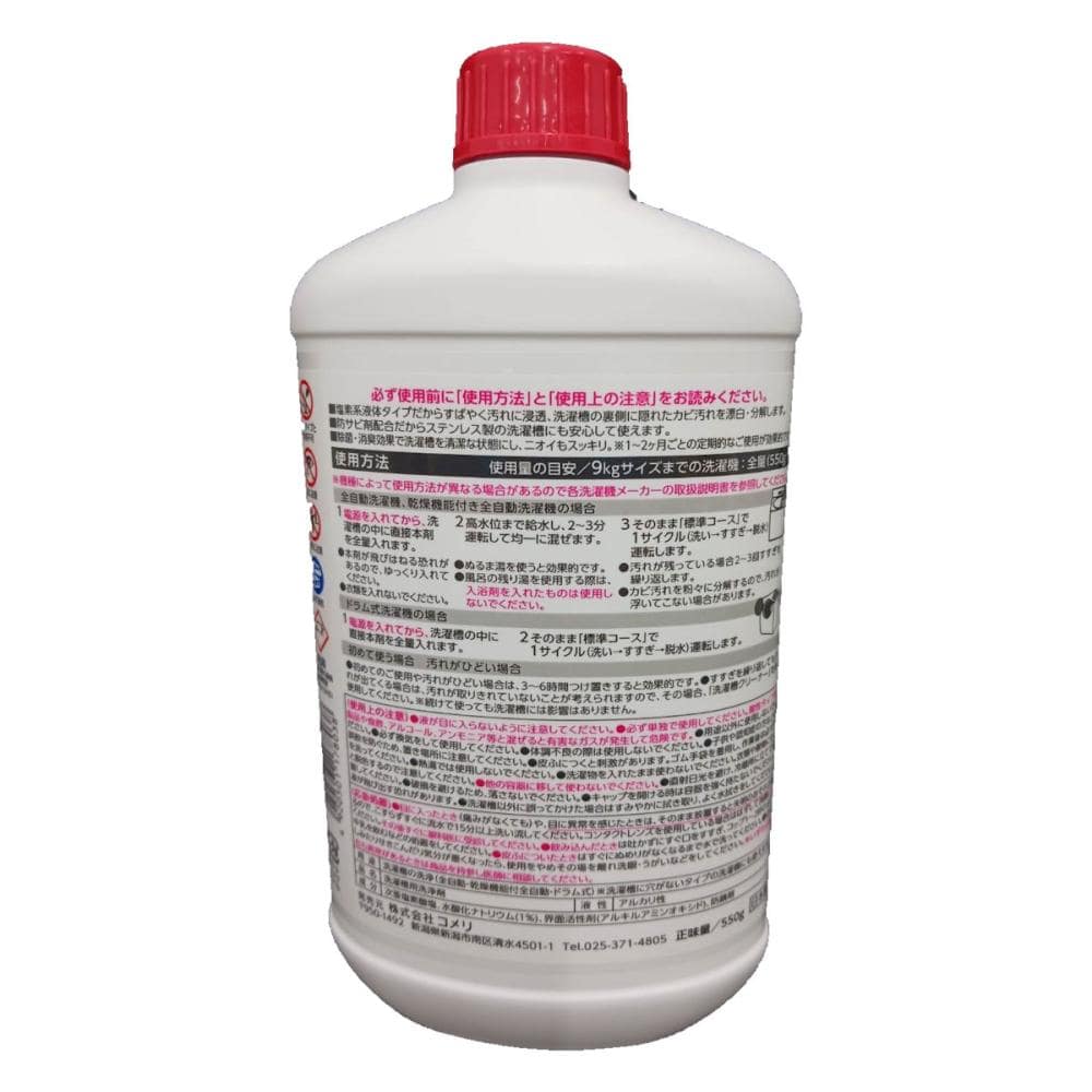 使用量の目安9kgサイズまでの洗濯機:全量(550g)※機種によって使用方法が異なる場合があるので各洗濯機メーカーの取扱説明書を参照してください。