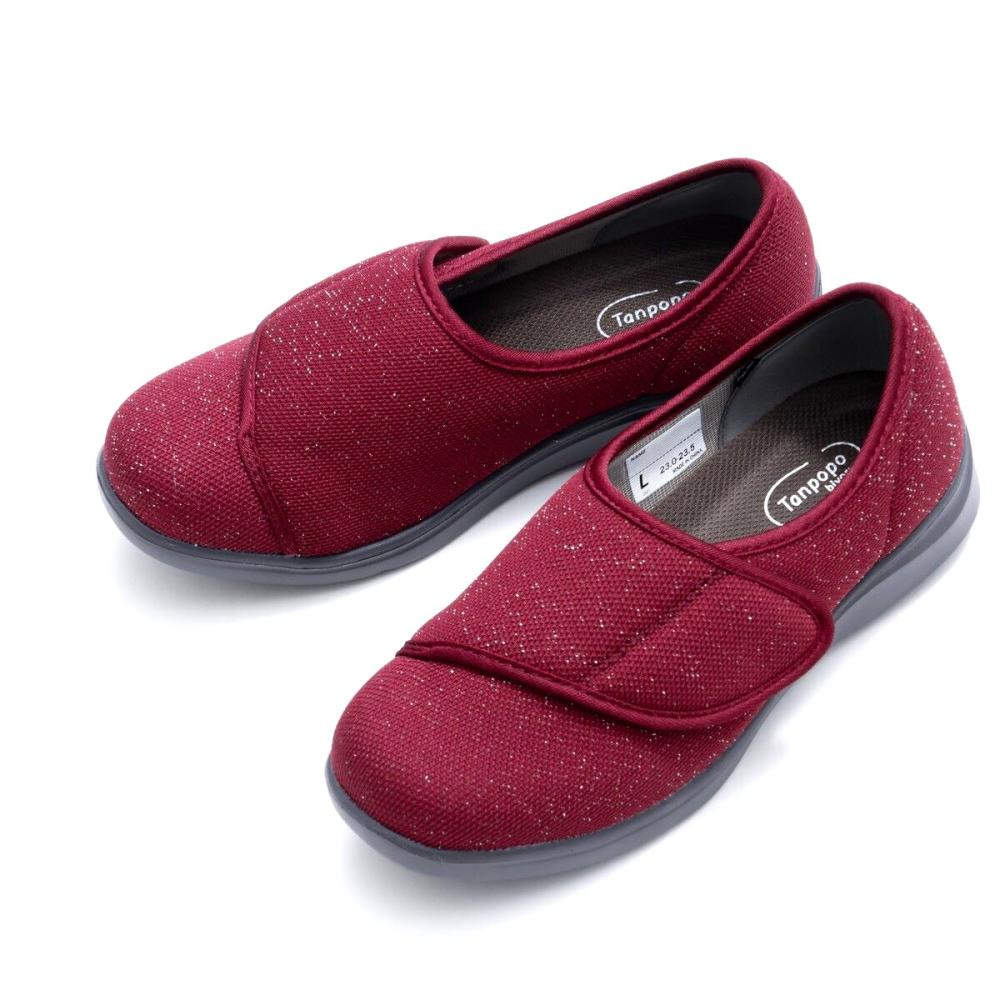 ◇仕様 ワインレッド M(22-22.5cm)足囲 3E 外出用 【材質】 表ポリエステル1.00パーセント 内ポリエステル1.00パーセント 底合成底(EVA) 【使用上の注意】 ●目的や用途にあわせて靴を履き分けてください。使用環境やその目的にあった靴をお選びください。 ●自分の足のサイズや特徴 症状を理解して、無理のない履き心地の靴を選んでください。足に合わない靴は、痛みや疲れの原因となります。 ●歩行時に靴のつま先と指先が当たると足のトラブルの原因となりますのでつま先にゆとり(捨て寸)がある靴を選ばれる事をおすすめします。 ●専門性を必要とする場合には主治医などにご相談ください。 ●足に合わない場合又は使用中不具合が生じた場合(かゆみ、かぶれ等)は、健康を損なう原因となることもございますのでただちにご使用を中止してください。 ●かかとをつぶさずにお履きください。脱げやすくなり、転んでケガをすることがあります。 ●靴ベらを使って履き、マジックベルトやファスナー、靴ひもでしっかりとしめて、甲部を固定してご使用ください。 ●雨天時、積雪時のご使用はなるべく避けてください。 ●濡れた床面やタイルでは、靴底の形状にかかわらず滑りやすくなります。 ●また、油のある場所でのご使用はなるべくお避けください。 ●滑りやすいだけでなく、靴が痛む原因にもなります。 ●お客様のご使用条件(足の状態、天候、床の状態、床の材質など)によりご使用期間に個人差が生じる場合がございます。 ●靴は汗を吸いやすく、同じ靴を毎日お履きになると、足が蒸れて不潔になる場合がございますので、複数の靴を交互に使用されることをおすすめします。 ●また発汗などによりかゆみ、かぶれ等を感じた場合には、直ちにご使用を中止してください。