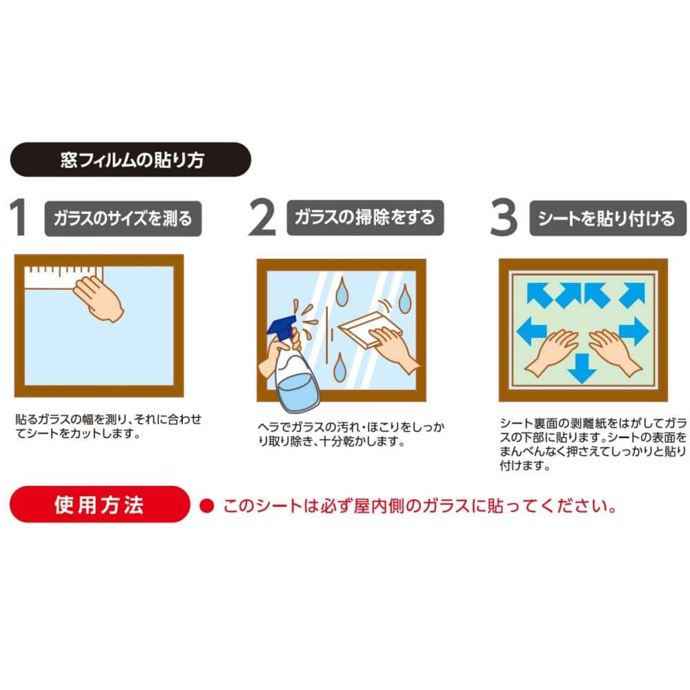 ●外気の影響でガラスの温度が低すぎる場合は貼りつきにくいので貼り付け作業は避けてください。