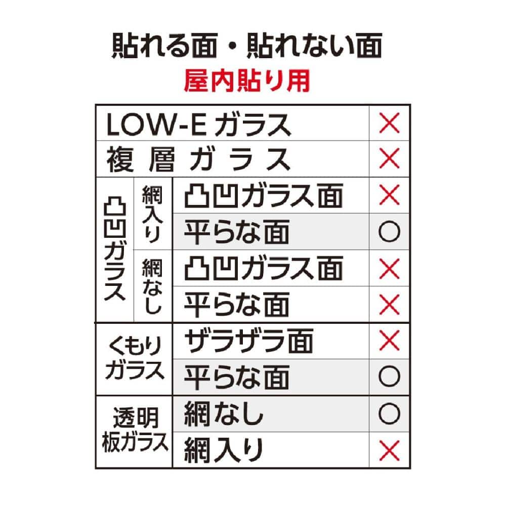 ●ヒビ割れたガラスに貼るとガラスの破片でケガをする場合がありますので、貼らないでください。