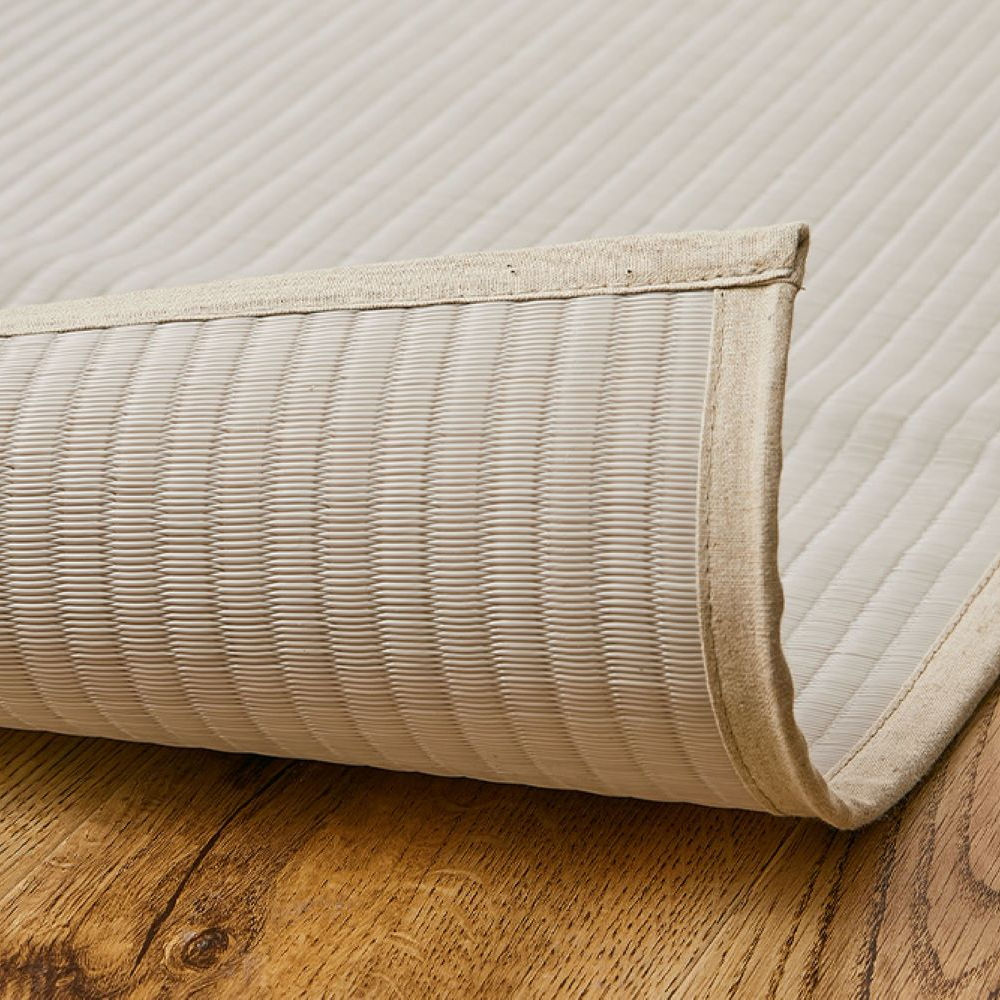 ■夏は涼しく、冬は暖かいから年中使える パイプ材を織り上げているため、肌に密着せずべた付かない。また、パイプ内の空気層の保温効果で床からの冷気を軽減。オールシーズンおすすめです。 ■汚れても水洗いOK ポリプロピレン素材なので飲み物をこぼしても染み込みにくく、さっと拭き取れます。 ■お子様とペットの暮らしに 丈夫で引っかき傷などにも強く、お子様やペットのいるご家庭でも安心。 ■裏張りなしで両面使えます。